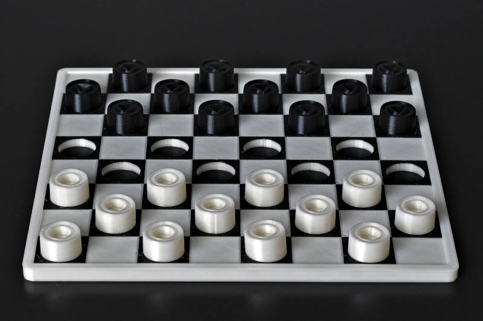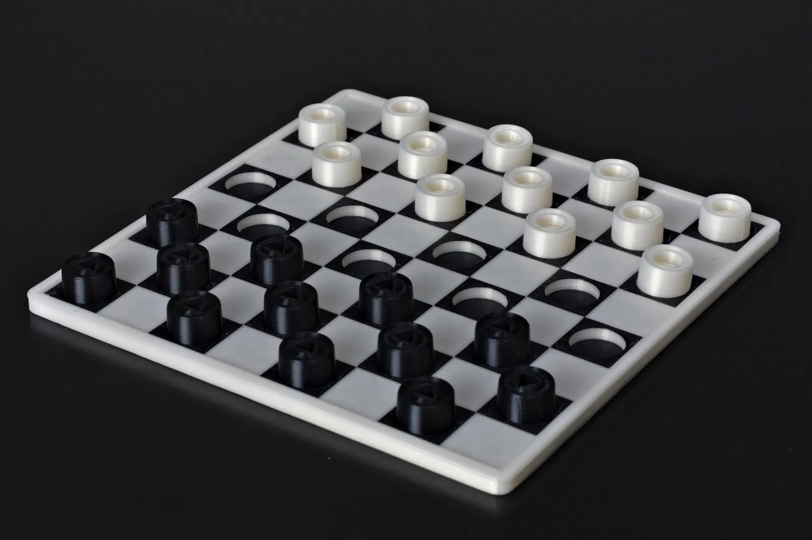 Những quân cờ này đã được thiết kế với người khiếm thị trong tâm trí, nhưng chúng có thể được chơi bởi bất kỳ ai. Chúng tôi đã rời khỏi cách đánh dấu truyền thống của các quân cờ đen bằng các đầu cờ, chọn một hình dạng hình học. Các quân cờ đã được chuẩn bị với kích thước tương thích với cờ vua của chúng tôi để bàn cờ có thể được sử dụng cho cả hai trò chơi. Chúng tôi cũng đã thiết kế một bàn cờ dành riêng cho trò chơi này.