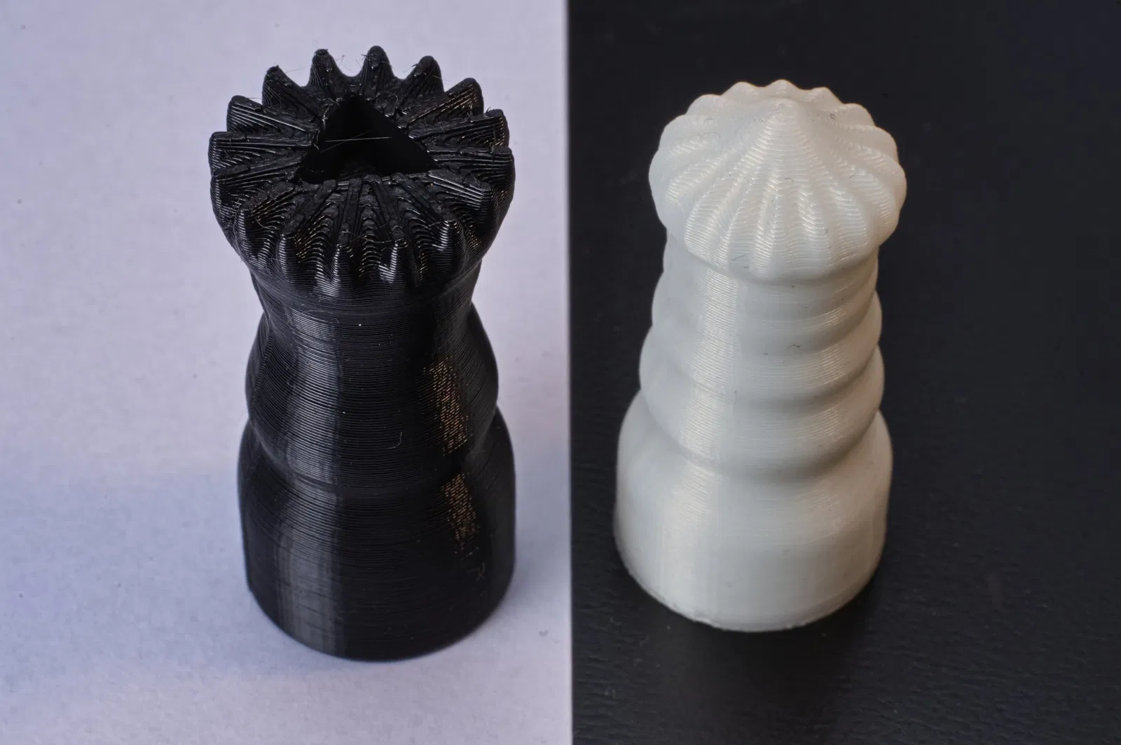 Chúng tôi sử dụng PLA cổ điển, đầu phun 0,6 mm cho bàn cờ, đầu phun 0,4 mm cho các quân cờ.