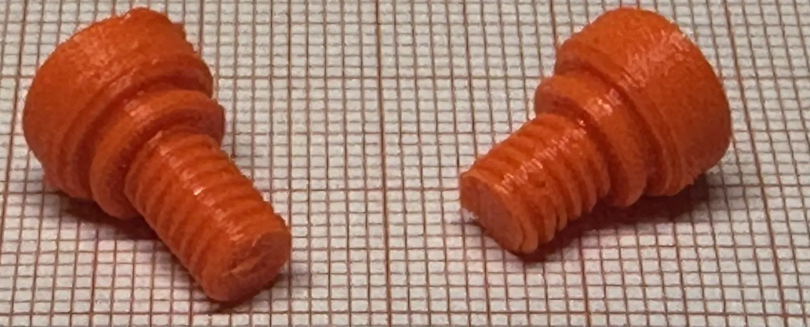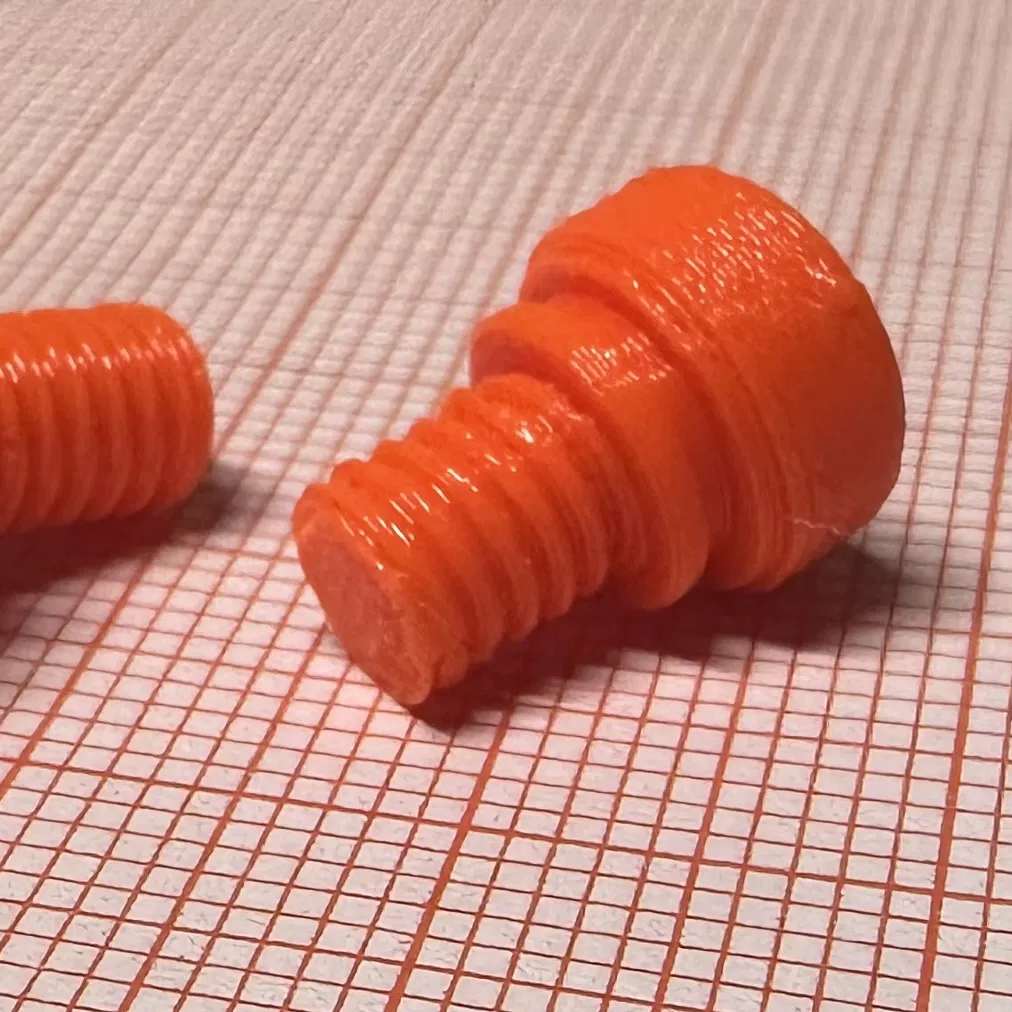 Ốc vặn bi mini M6 ren 6 và 8 mm, đường kính 10 mm. Bản in từ PETG, đầu phun 0.4, lớp 0.2, 40% infill. Đừng vặn quá chặt!