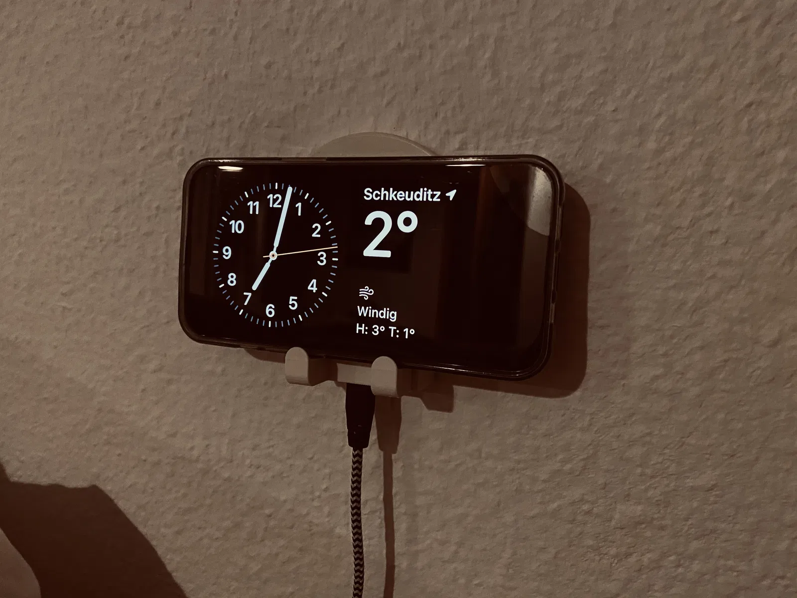Là người dùng iPhone 11, tôi không có tùy chọn sạc điện thoại qua kết nối Magsafe vào ban đêm. Tình cờ tôi thấy rằng mình cũng có thể kích hoạt chế độ chờ với iPhone 11. Vì vậy, tôi đã phát triển một giá treo tường cho đế sạc IKEA LIVBOJ hiện có của mình.