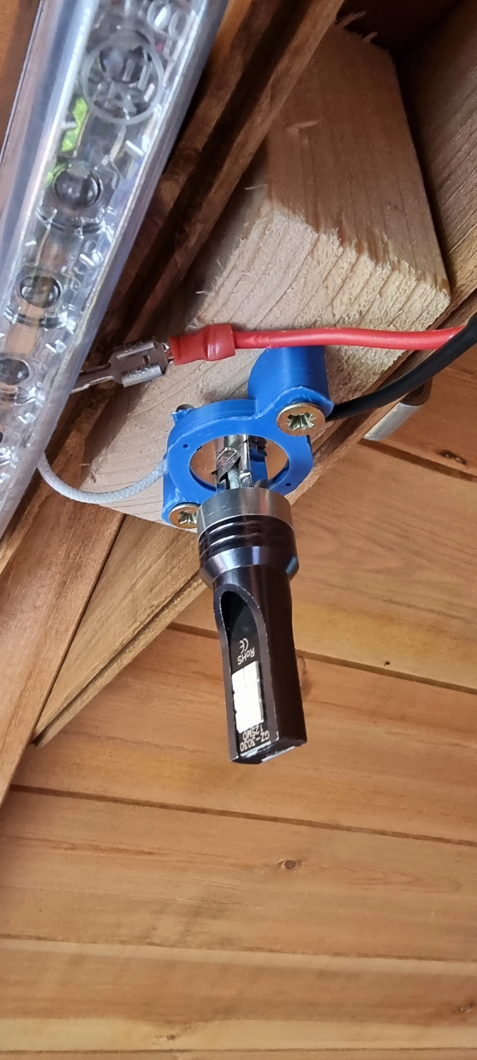 Tao mua mấy bóng đèn LED H3 gắn cho xe hơi mà nó không vừa cái hốc đèn, thay vì bỏ phí thì tao làm cái đế để gắn nó vô nhà kho, nhà kho nhà tao có xài hệ thống năng lượng mặt trời 12V.