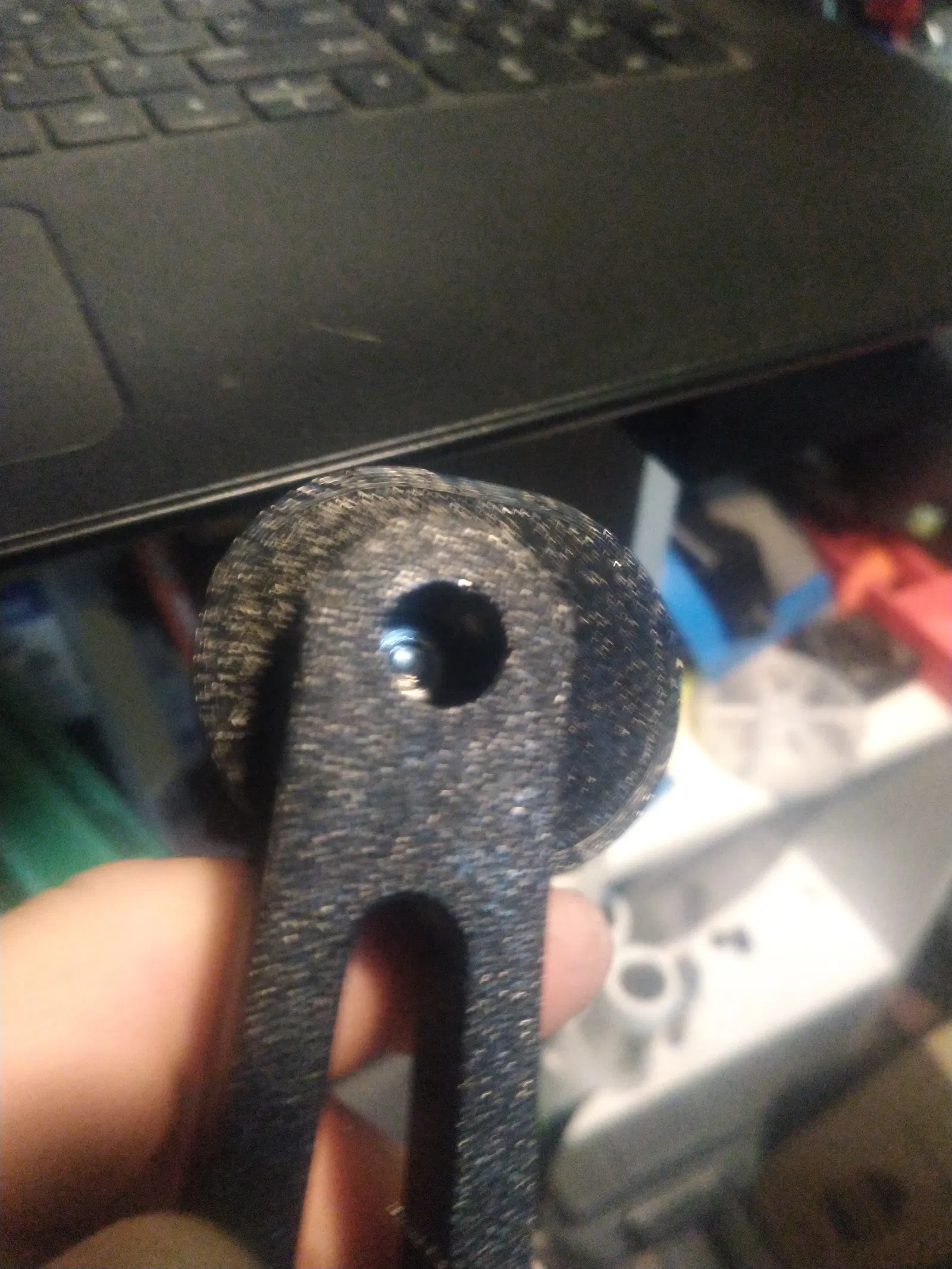 Đầu tiên, ép mấy cái đai ốc M5 vô mấy cái đế ngoài, rồi bắt mấy cái V-wheel vô đế ngoài bằng cách dùng vòng đệm M5 kẹp giữa bánh xe và đế. Sau khi bắt xong 2 cái V-wheel vô 2 cái đế, thì ép cái ống trụ ở giữa vô mấy cái V-wheel đã bắt vô đế. Trong lúc ép thì bạn nhớ dán keo mấy cái đế ngoài lại với nhau nha. Làm đúng thì cái ống trụ nó sẽ quay rẹt rẹt.