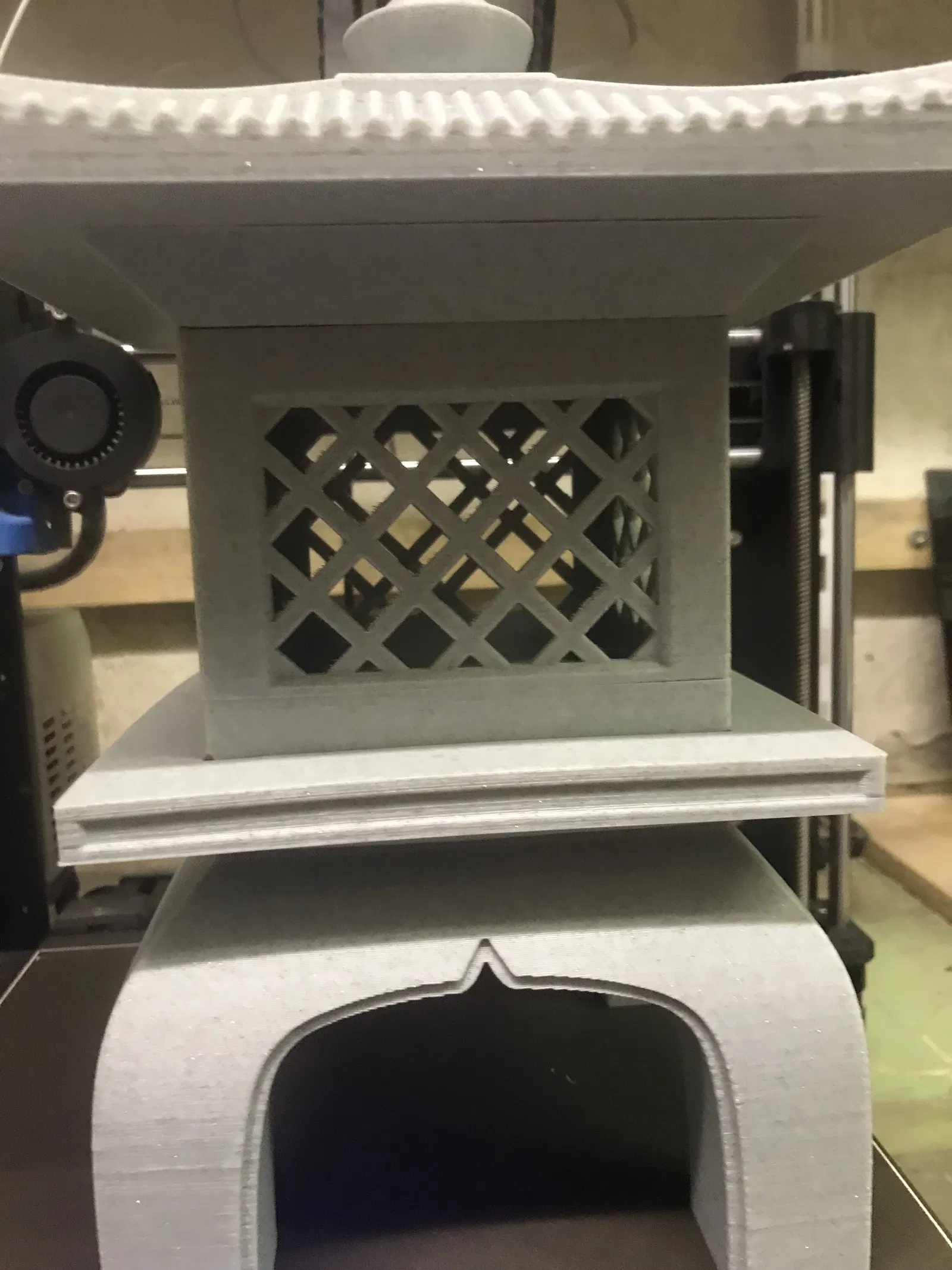 Do phần chóp đèn lồng bị giảm kích thước xuống còn 80% trong khi phần giữa và đế vẫn giữ nguyên 100%, dẫn đến sai lệch kích thước tổng thể. Mô hình này có thể hữu ích cho việc nghiên cứu hoặc sửa lỗi in ấn liên quan đến sự co ngót không đồng đều.