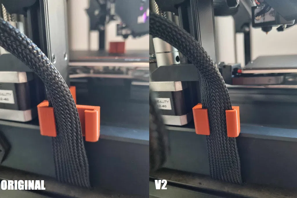 Mình khuyên mọi người nên xài bản Cable_holder_v2.stl, có bản 2mm chật hơn/rộng hơn nếu bạn muốn.
