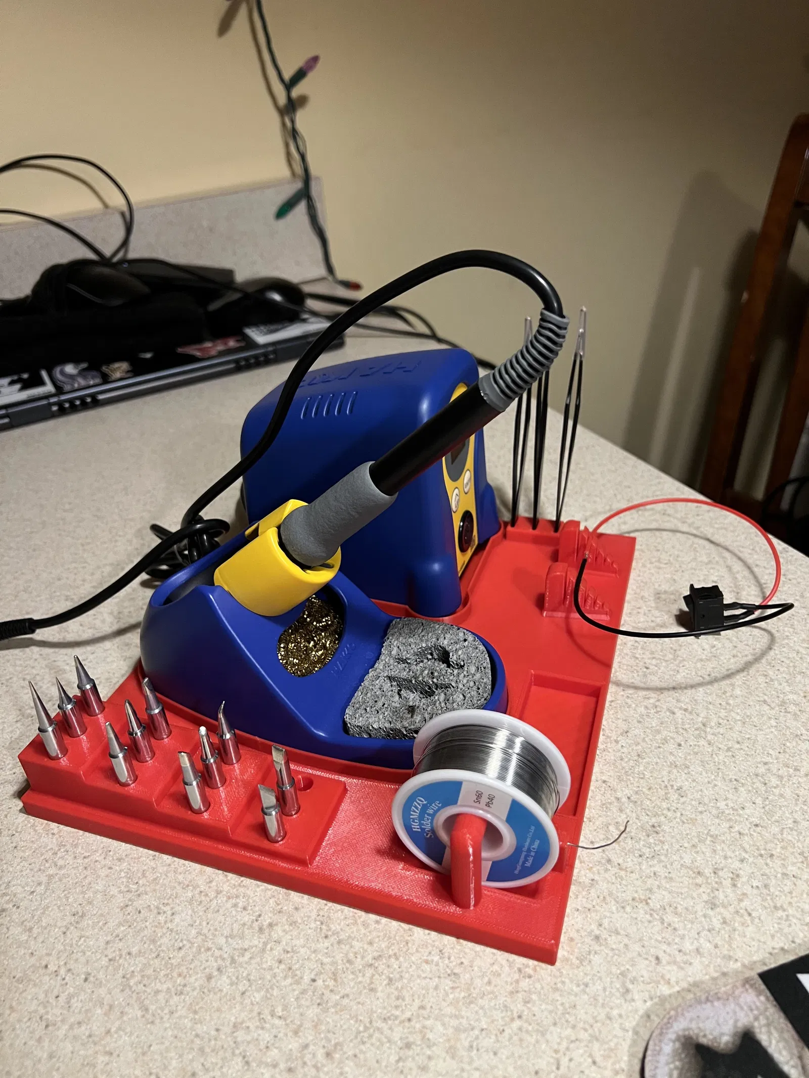 Cái khay này giúp bạn giữ gọn gàng tất cả dụng cụ sửa đồ, chống thất lạc. Nó được thiết kế để đựng Máy hàn Hakko FX-888D và Trạm hàn, cùng với nhiều khe cắm cho đầu mỏ hàn, giá đỡ thiếc hàn, bộ gá và khay đựng linh kiện nhỏ.
