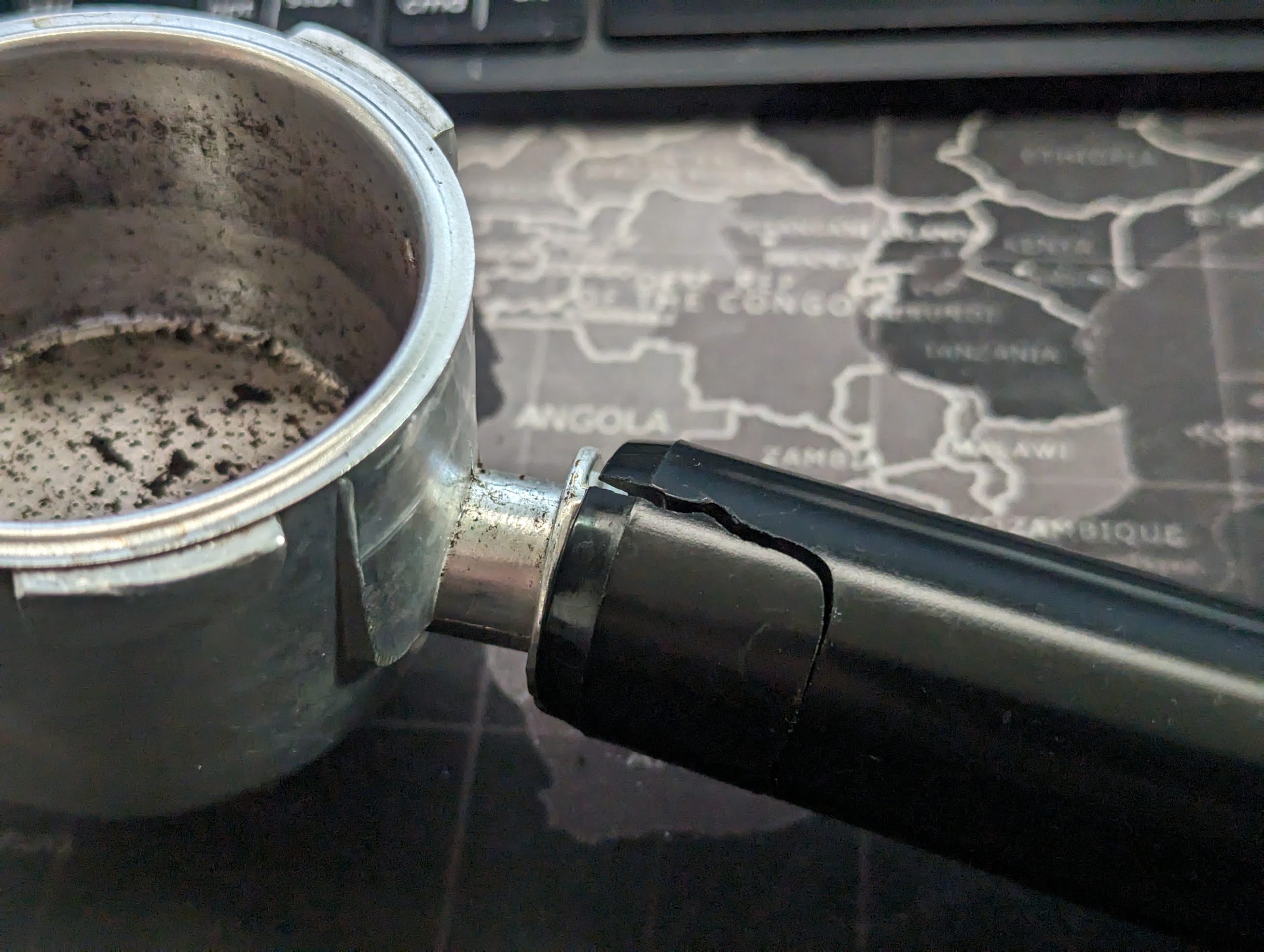 Tui được tặng cái máy pha cà phê Krups cũ, mà cái tay cầm của nó thì bắt đầu rã ra rồi.