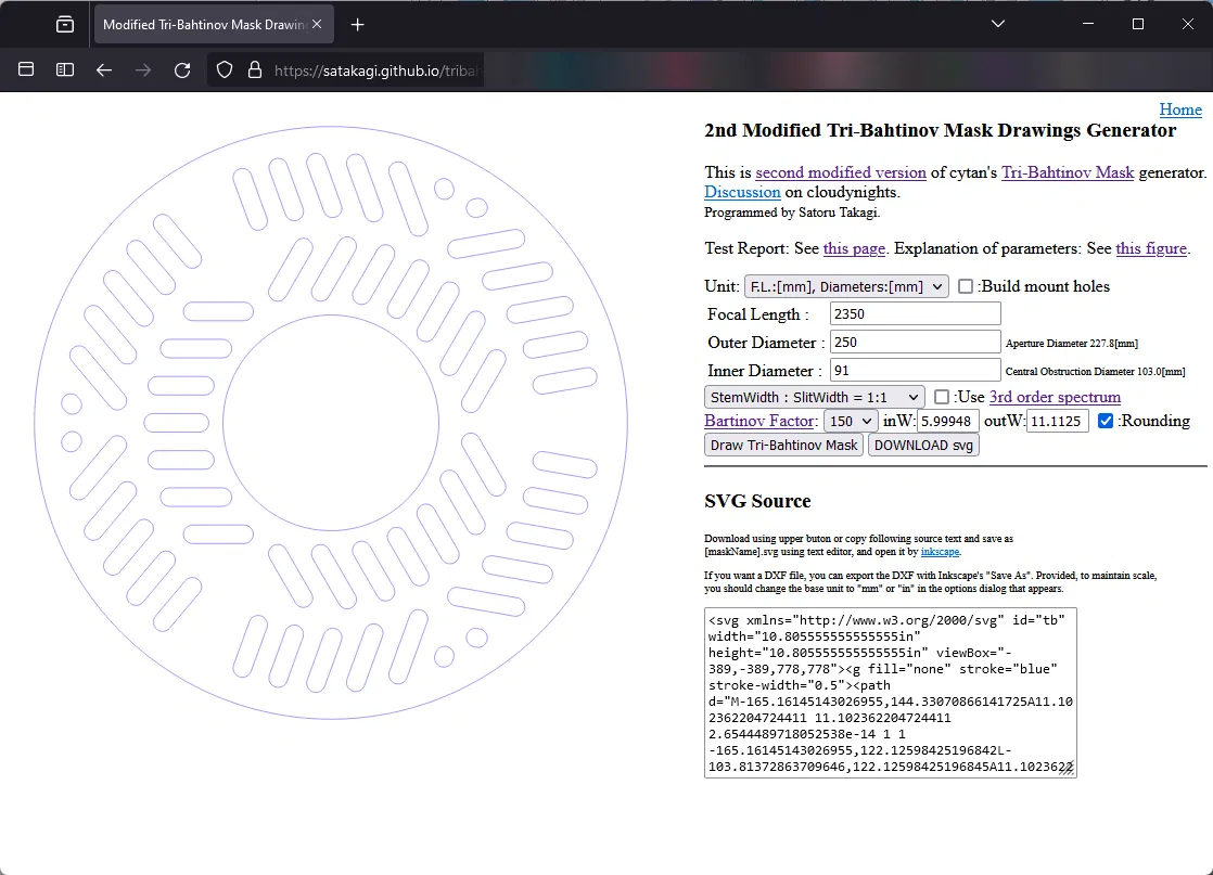 Mặt nạ Tribahtinov đối xứng, bo tròn cho Celestron 925 Edge HD, dựa trên máy tính Satakagi và núm vặn M3 thay thế vít gốc. Bao gồm các bộ phận in và hướng dẫn chi tiết về thiết kế, in ấn và hiệu chỉnh.