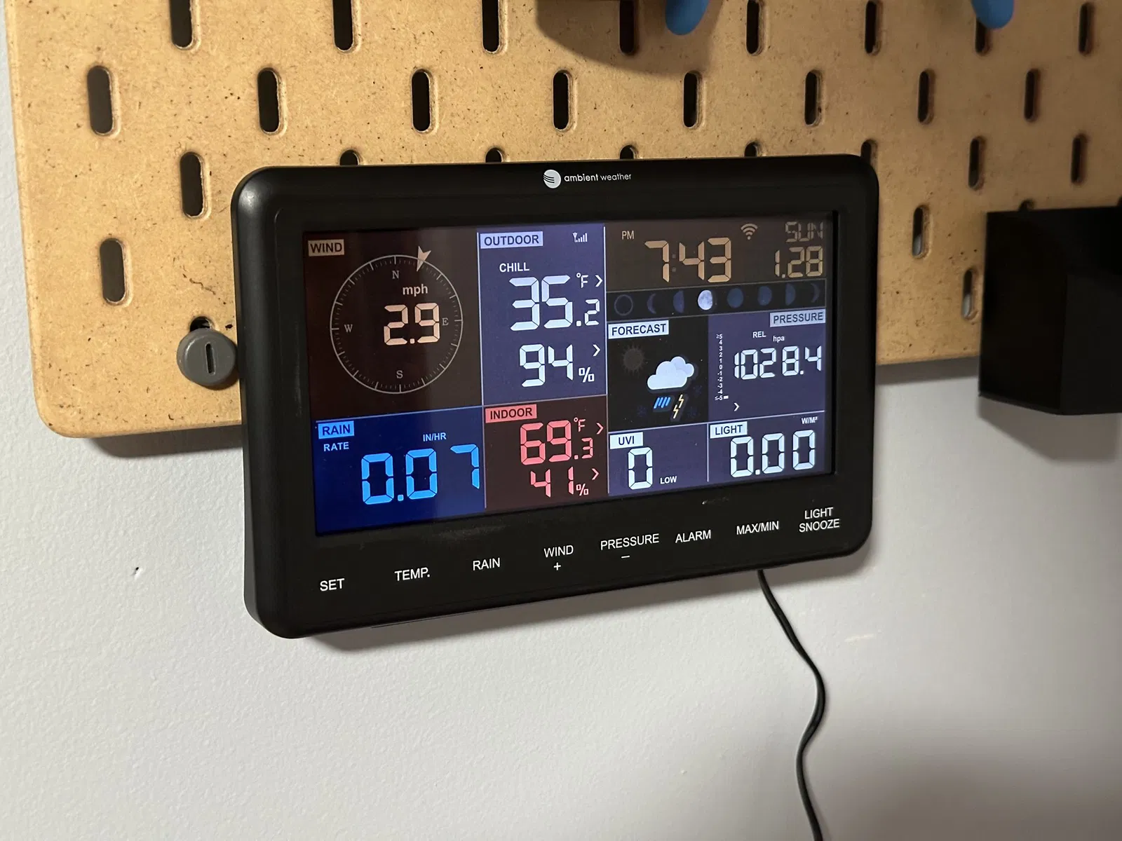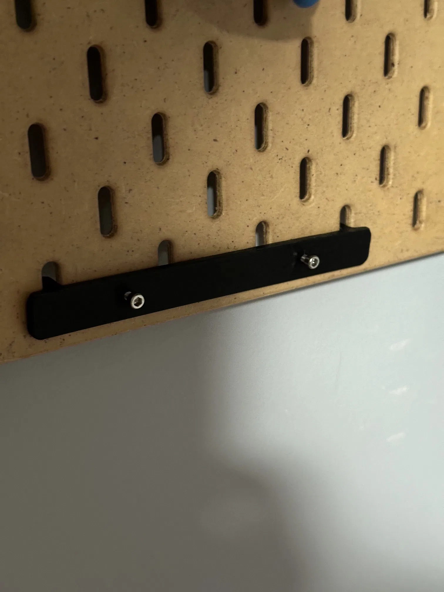Mấy cái màn hình của Ambient Weather có cái lỗ treo tường, nhưng mà mấy cái lỗ đó không có khớp với cái bảng SKADIS 40mm của IKEA. Cái adapter nhỏ này sẽ nhận hai con ốc M3 và có mấy cái móc cài vô cái bảng pegboard cho gọn.