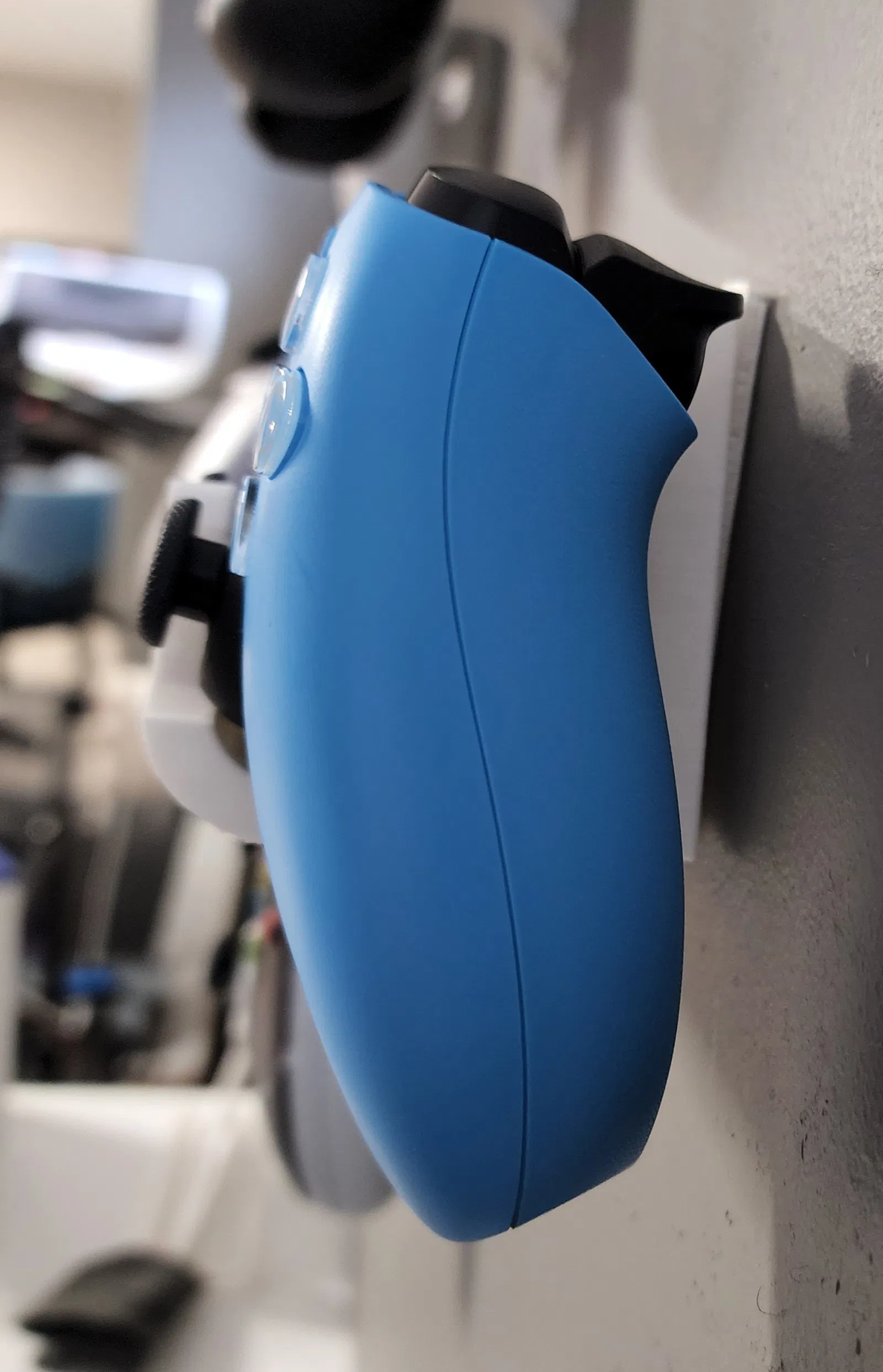 Giá treo tường cho tay cầm Dualsense PS5, được thiết kế tối giản, không logo, và gắn bằng các miếng dán Command strips hoặc keo dán thay vì ốc vít. Có 2 phiên bản: dáng mỏng áp sát tường và phiên bản có khoảng hở. File Step có sẵn để tùy chỉnh.