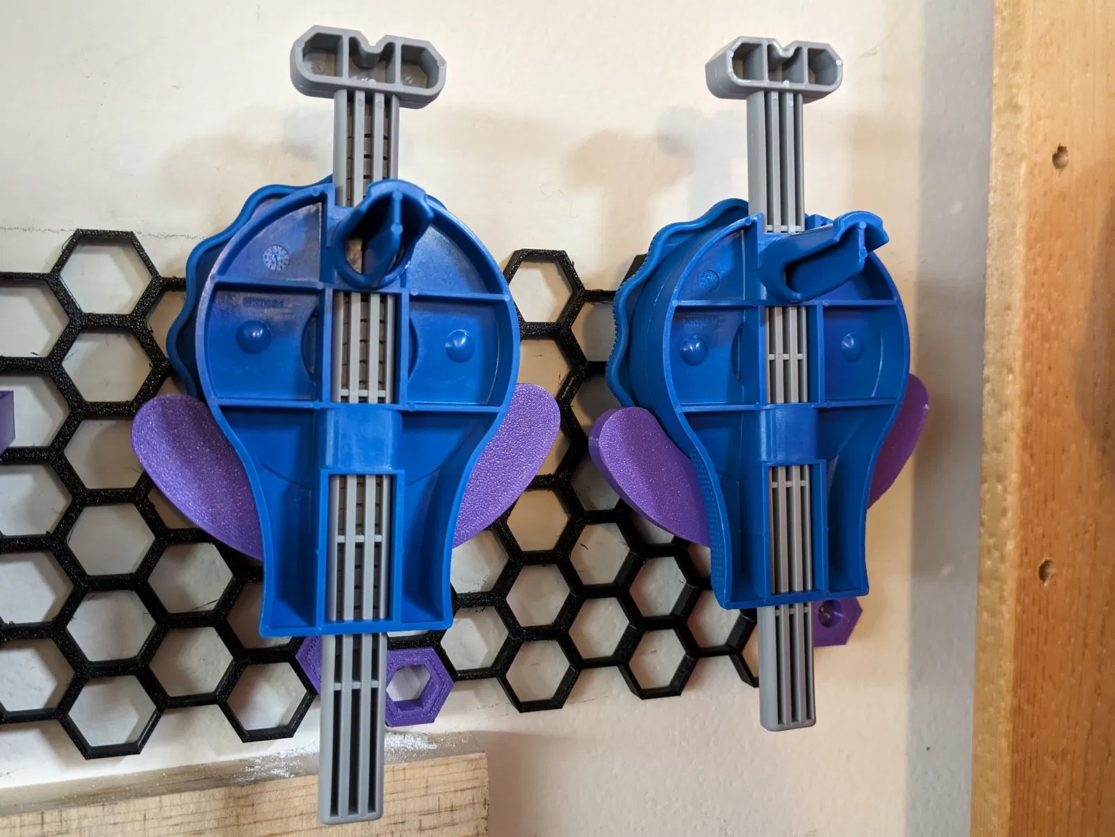 Tôi thiết kế cái này để xài chung với hệ thống lưu trữ dạng tổ ong trên tường của RostaP. Kẹp sẽ treo ngược trên giá đỡ, với phần phẳng hơn (phần trên) quay vào tường.
