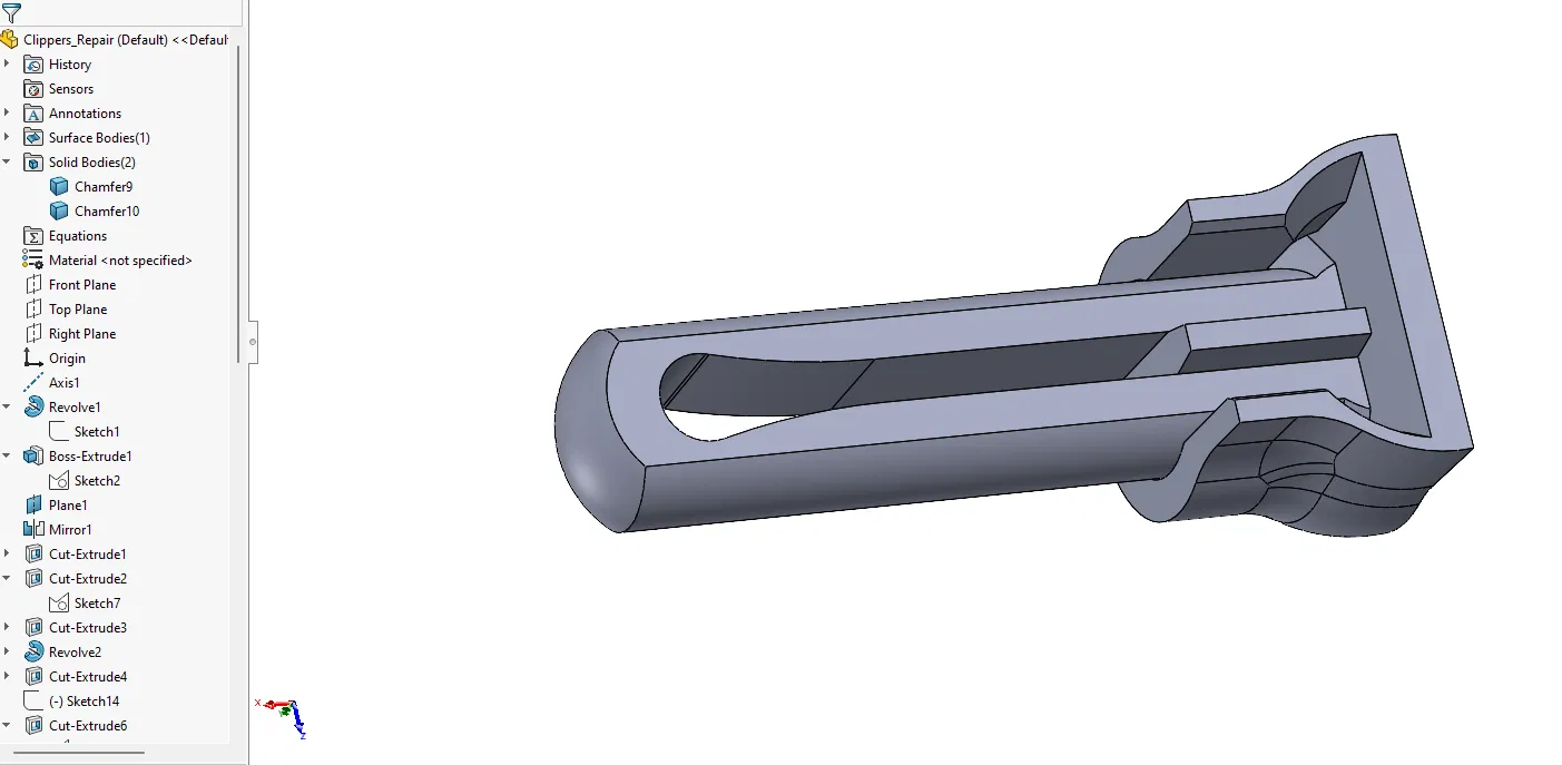 Tui đã chế tạo thành công một chốt thay thế cho kềm cắt móng chân bị gãy bằng nhựa Polycarbonate (PC) qua quy trình in 3D FFF. Giải pháp này giúp sửa những chiếc kềm giá rẻ của Trung Quốc bị gãy chốt nhựa. Tui đã lặp lại thiết kế nhiều lần và tối ưu hóa để đạt độ bền tốt nhất.