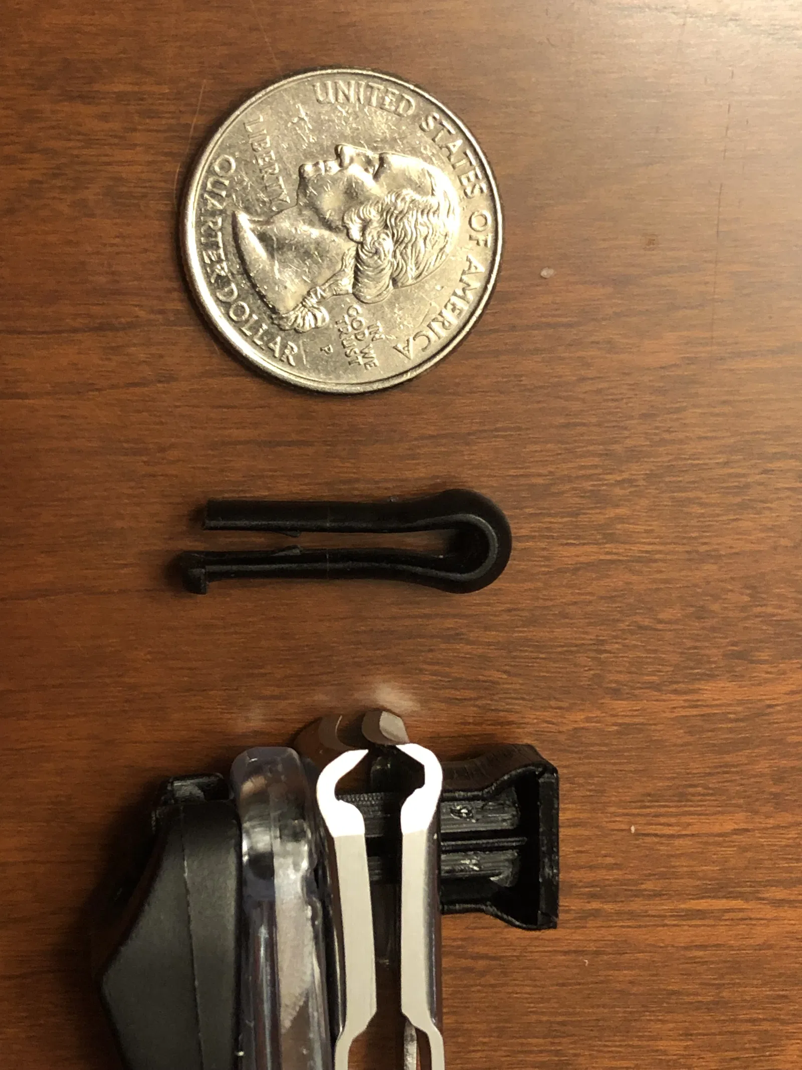 Đây là thiết kế 2 mảnh, với cái nắp nhỏ bao bọc lấy cái chốt mới sau khi nó được luồn qua phần kim loại kẹp và 2 cái cần kềm.