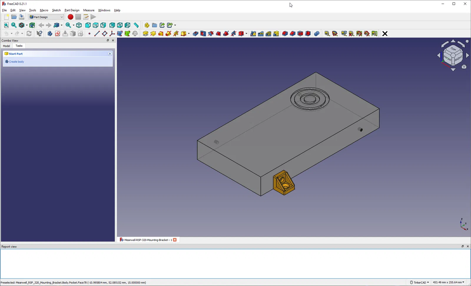 Tui thiết kế cái bracket đơn giản này bằng FreeCAD vì tui muốn gắn cái Meanwell RSP-320-48V bên dưới mấy cái kệ treo tường của tui. Cái RSP-320-48V sẽ được chỉnh lên 59V để cấp nguồn cho cái bộ chuyển đổi hạ áp Ruideng Riden RK6006 (60V/6A) để tạo thành một bộ nguồn bàn nhỏ gọn.