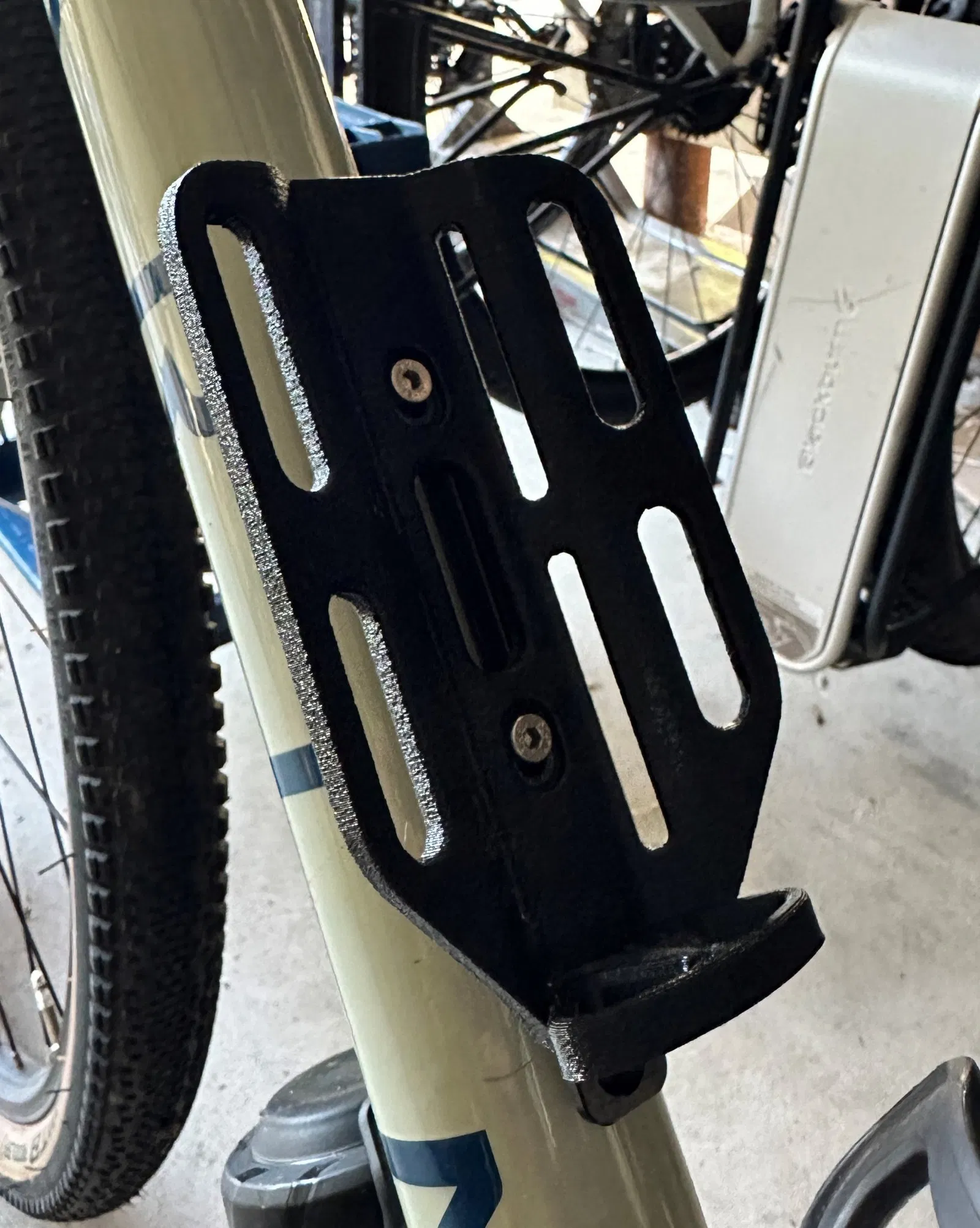 Giá đỡ 2 lỗ sẵn sàng để được gắn ở bất kỳ đâu trên xe đạp của bạn! Dành cho ống, chai nước quá khổ, hoặc bất cứ thứ gì tương tự. Tôi cũng đã làm một giá đỡ 3 lỗ cho phuộc và hàng hóa lớn hơn.