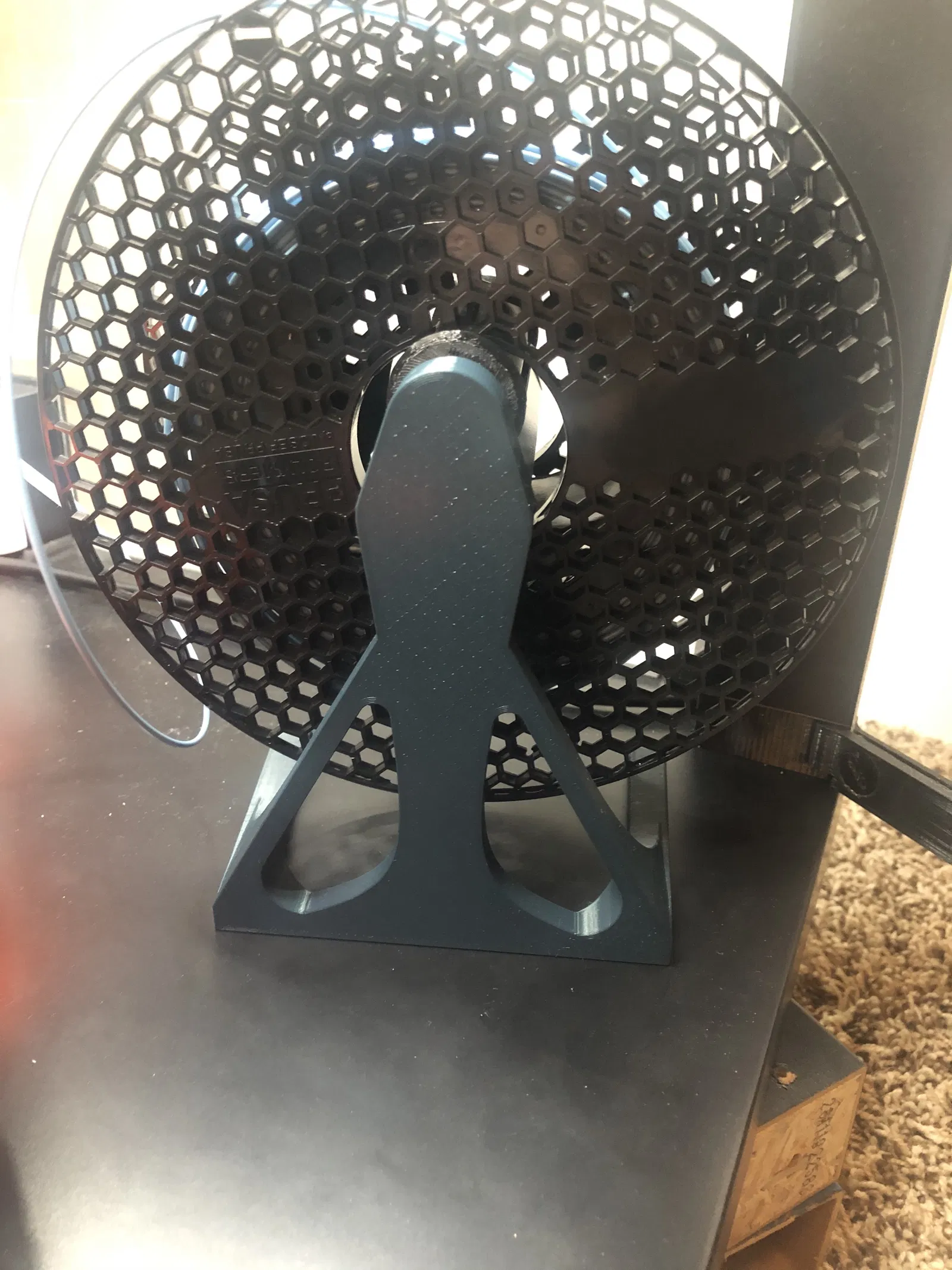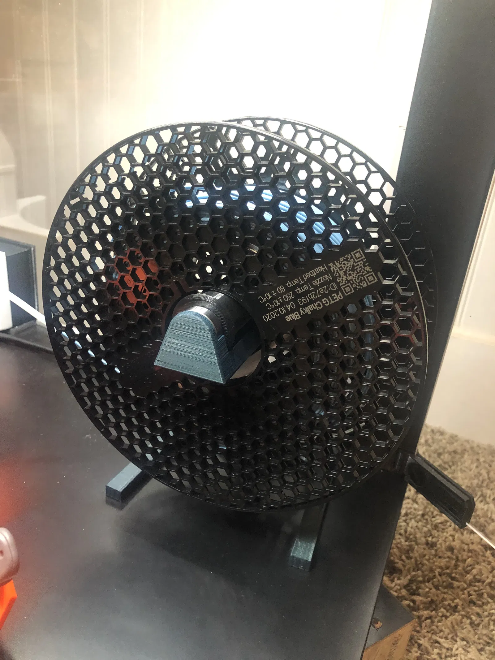 Cái tủ đặt sát đất làm việc thay cuộn dây khó khăn? Đế giữ cuộn dây này ráp đơn giản, đặt sát đất, tương thích nhiều kích thước cuộn dây và tự đứng vững. In bằng PLA với thông số đề xuất.