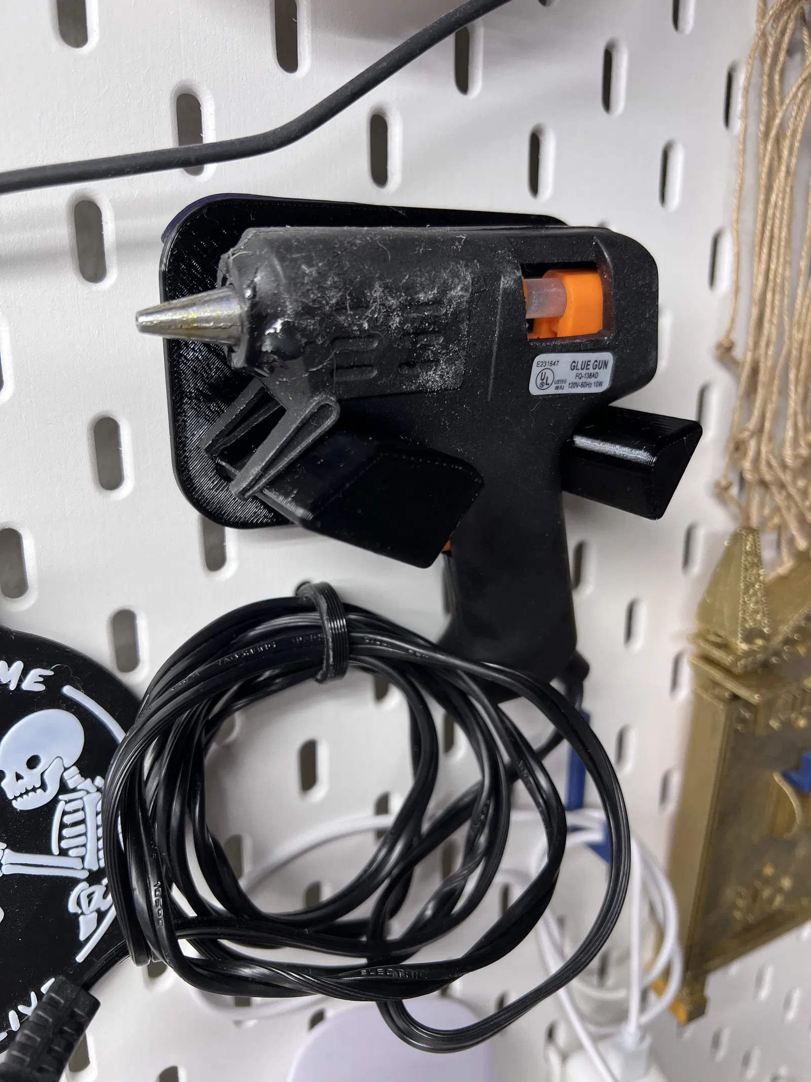 Cái này để gắn súng keo nóng vô bảng pegboard Skadis của Ikea nè. Nhớ là phải cần 2 cái móc treo Skadis Universal nha. Coi mẫu hook đa năng ở đây nè: https://www.printables.com/model/323748-skadis-universal-hook