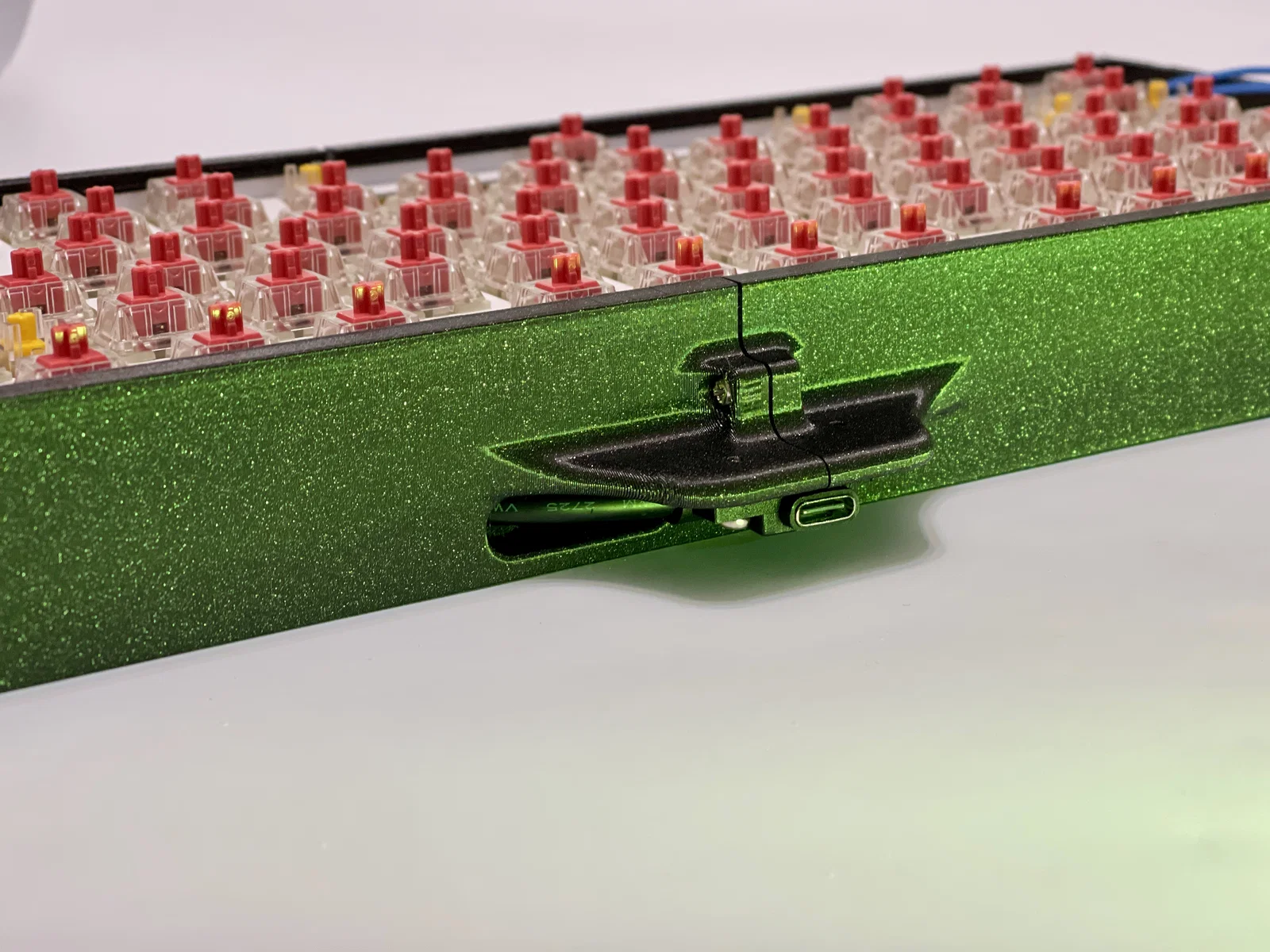 Chỉ cần trượt bàn phím vào trong, thêm ít mút bên dưới, gắn dây cáp USB từ bo mạch bằng 2 con ốc, và bắt ốc cái vỏ lại với nhau.