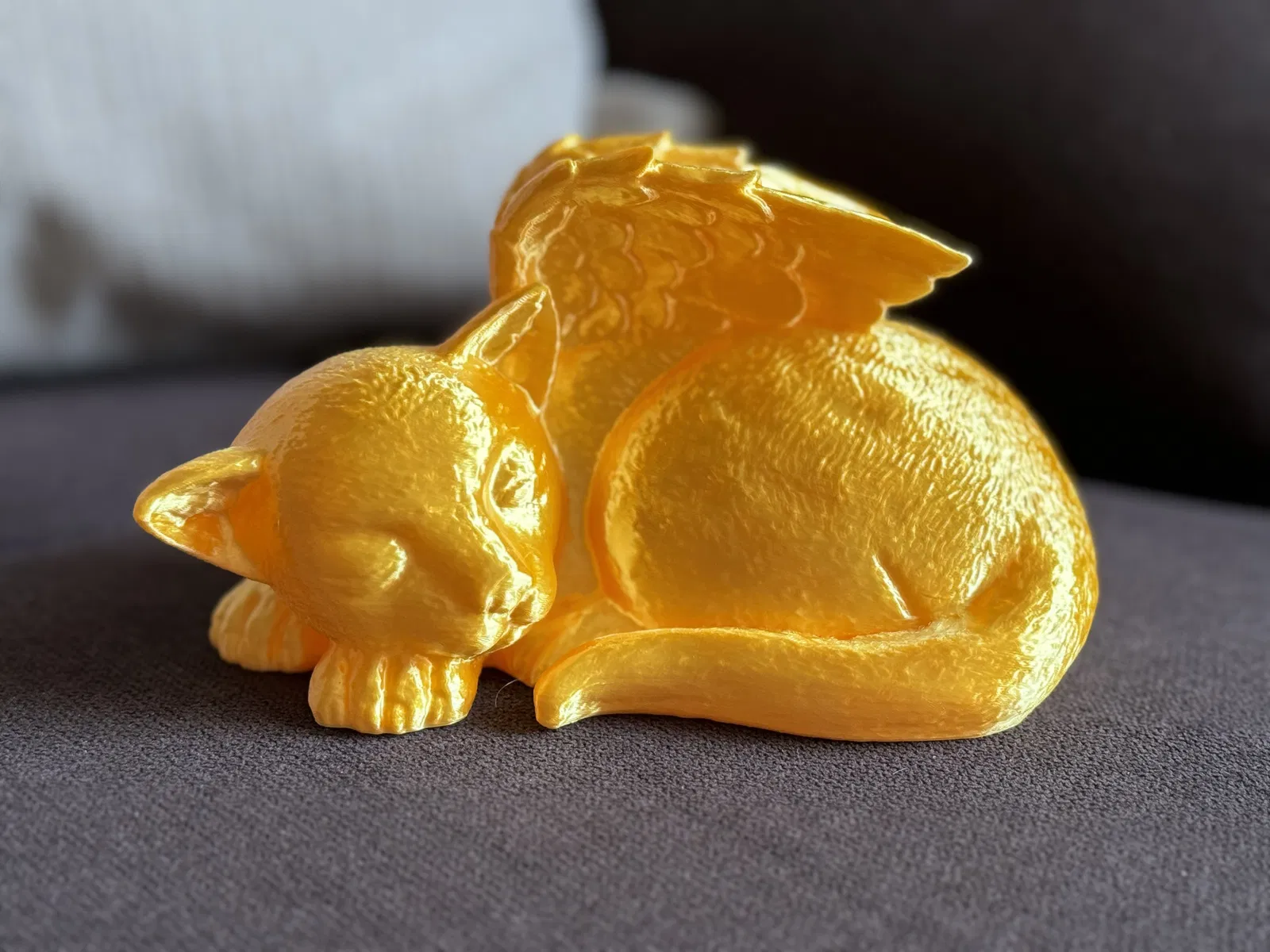 Mình dùng Polycam để scan tượng một con mèo đang ngủ có cánh. Thấy kết quả đẹp nên chia sẻ lại cho mọi người. Tượng mèo thiên thần này nhìn cưng xỉu, rất hợp để in làm đồ trang trí.