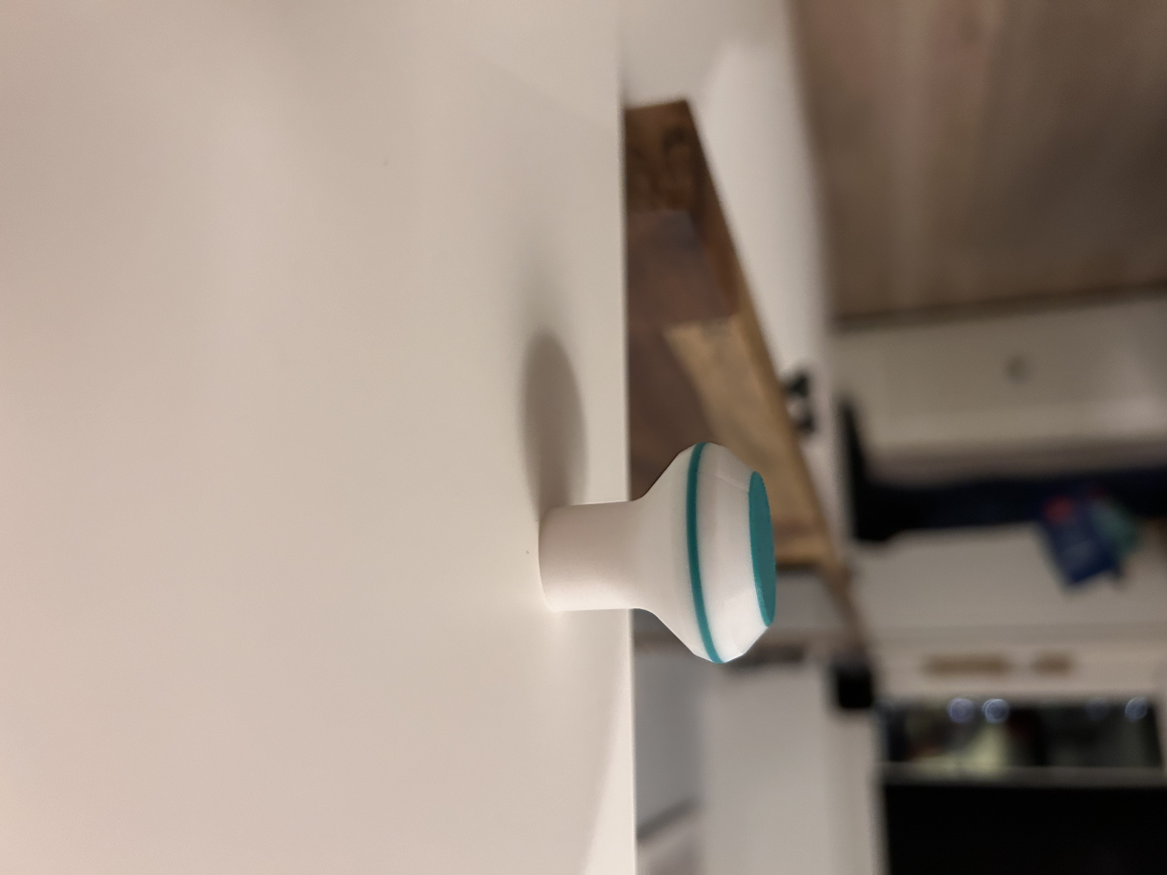 Mẫu nút vặn (Knauf) đơn giản, thích hợp để lắp cho các loại cửa tủ, kệ. Bạn có thể in hai màu hoặc tùy chỉnh theo ý thích. Hình ảnh minh họa cho thấy sản phẩm đã được lắp đặt trên cửa tủ IKEA, mang lại vẻ ngoài hiện đại và tiện dụng.