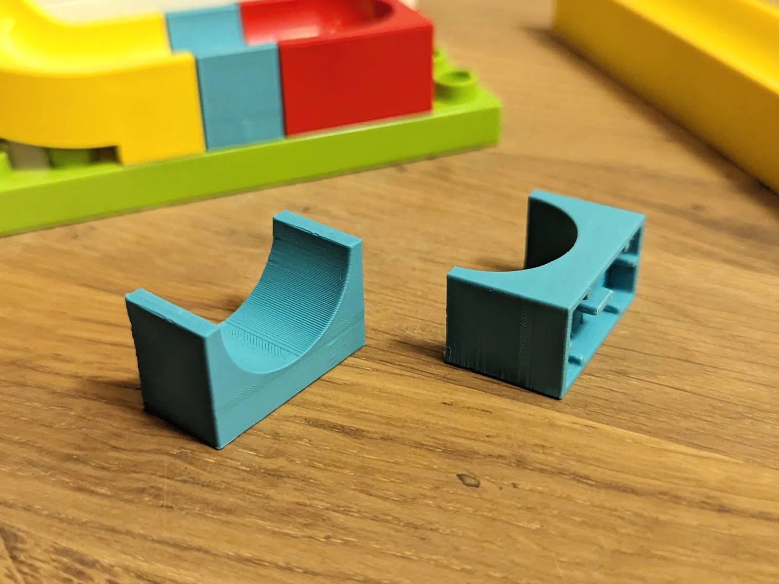 Đường ray bi Hubelino dài 1, tương thích Lego Duplo, cho phép thiết kế đường ray linh hoạt. Mẹo in: dùng brim, điều chỉnh giãn nở ngang nếu cần.