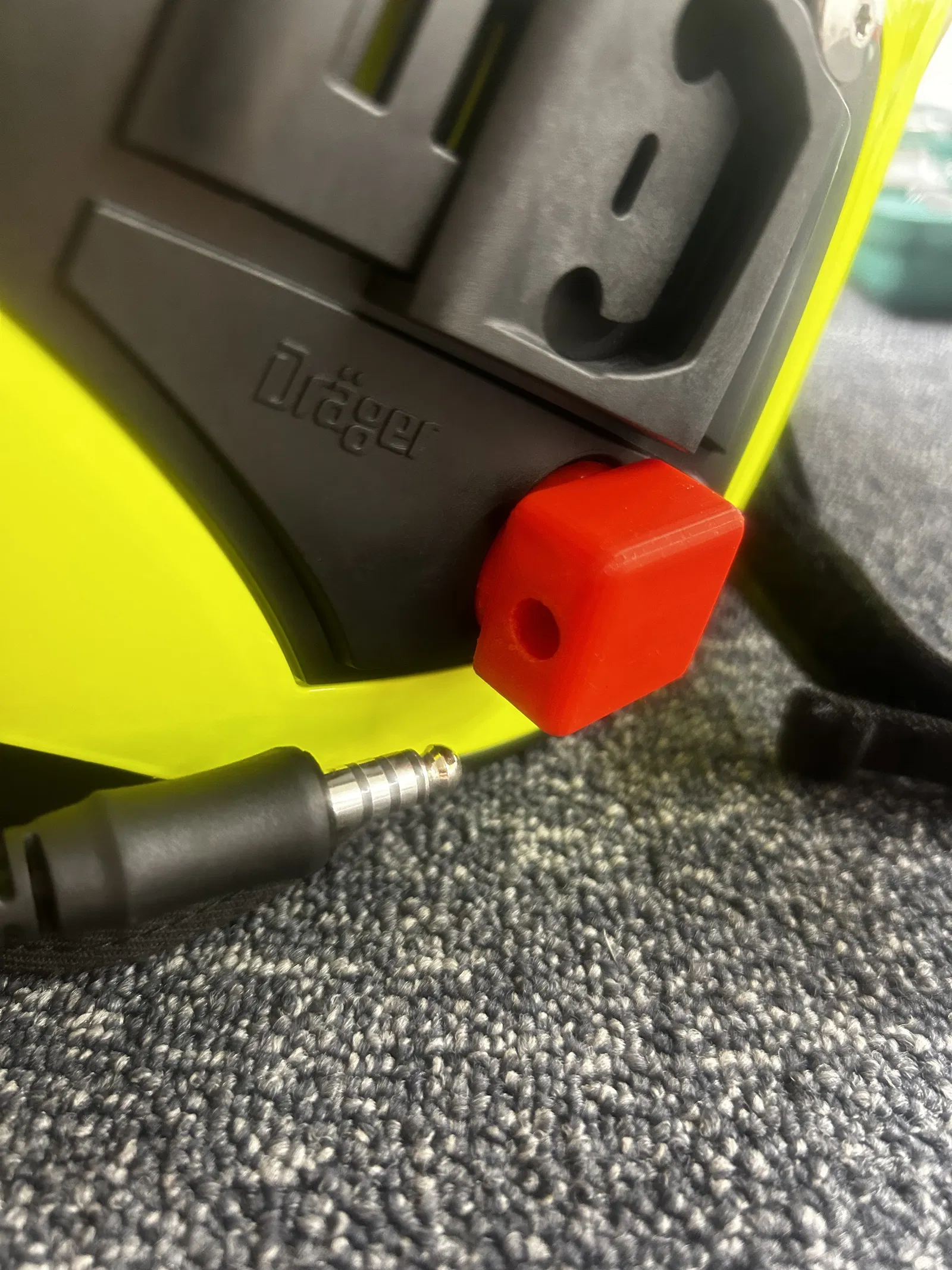 Đây là giá đỡ bổ sung cho thiết bị liên lạc trên mũ bảo hiểm của lính cứu hỏa, loại này vừa với mũ Dräger HPS 7000.