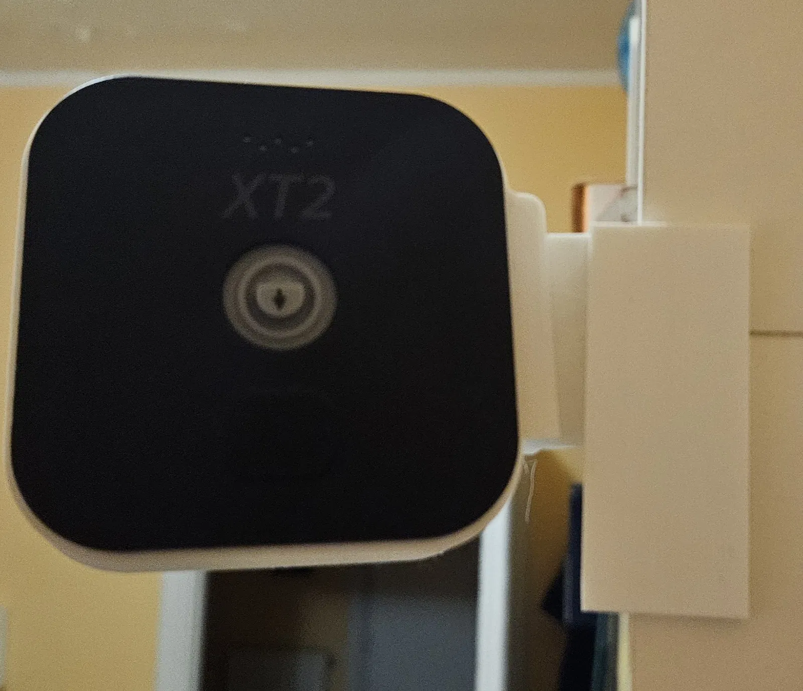 Lắp đặt camera Blink XT2 trên kệ sách, cho phép nhìn theo hướng song song với kệ. Mô hình gồm 4 bộ phận in 3D, không cần keo, với nhiều tùy chọn góc nhìn. Hướng dẫn in ấn và lắp đặt chi tiết.