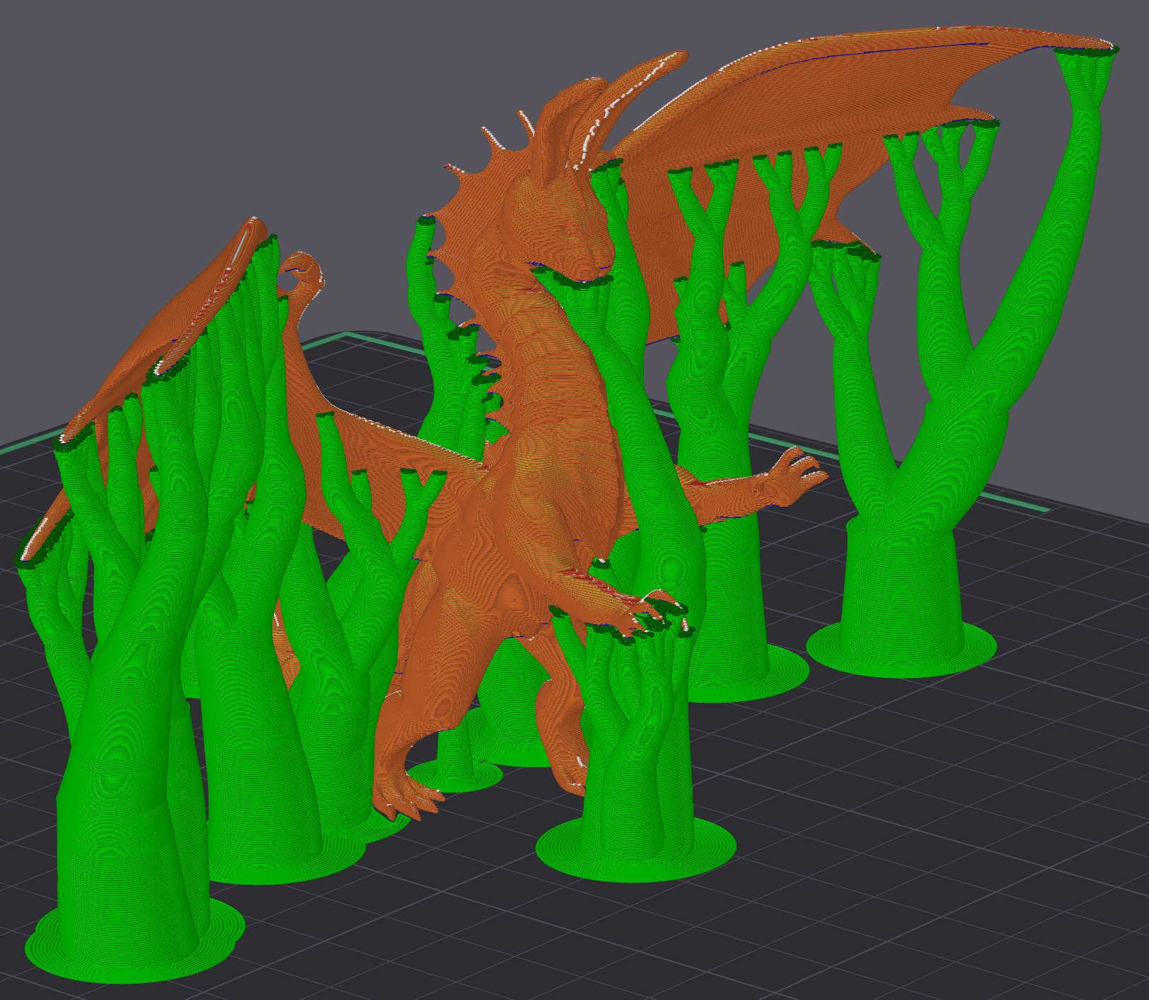 In bằng giá đỡ dạng cây/hữu cơ trên máy Bambu X1C với PLA.