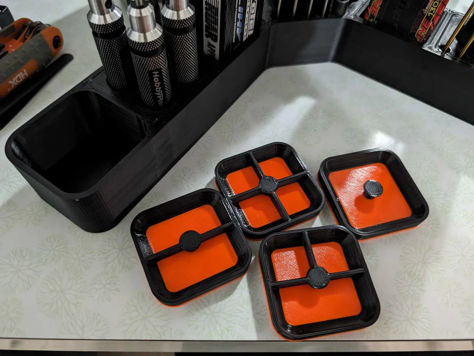4 lỗ M5 trên kệ sẽ dùng để gắn adapter để sử dụng kệ cho bộ sạc (hoặc bất cứ thứ gì) nếu mọi người muốn làm vậy nhưng tôi chưa thiết kế khay nào.
