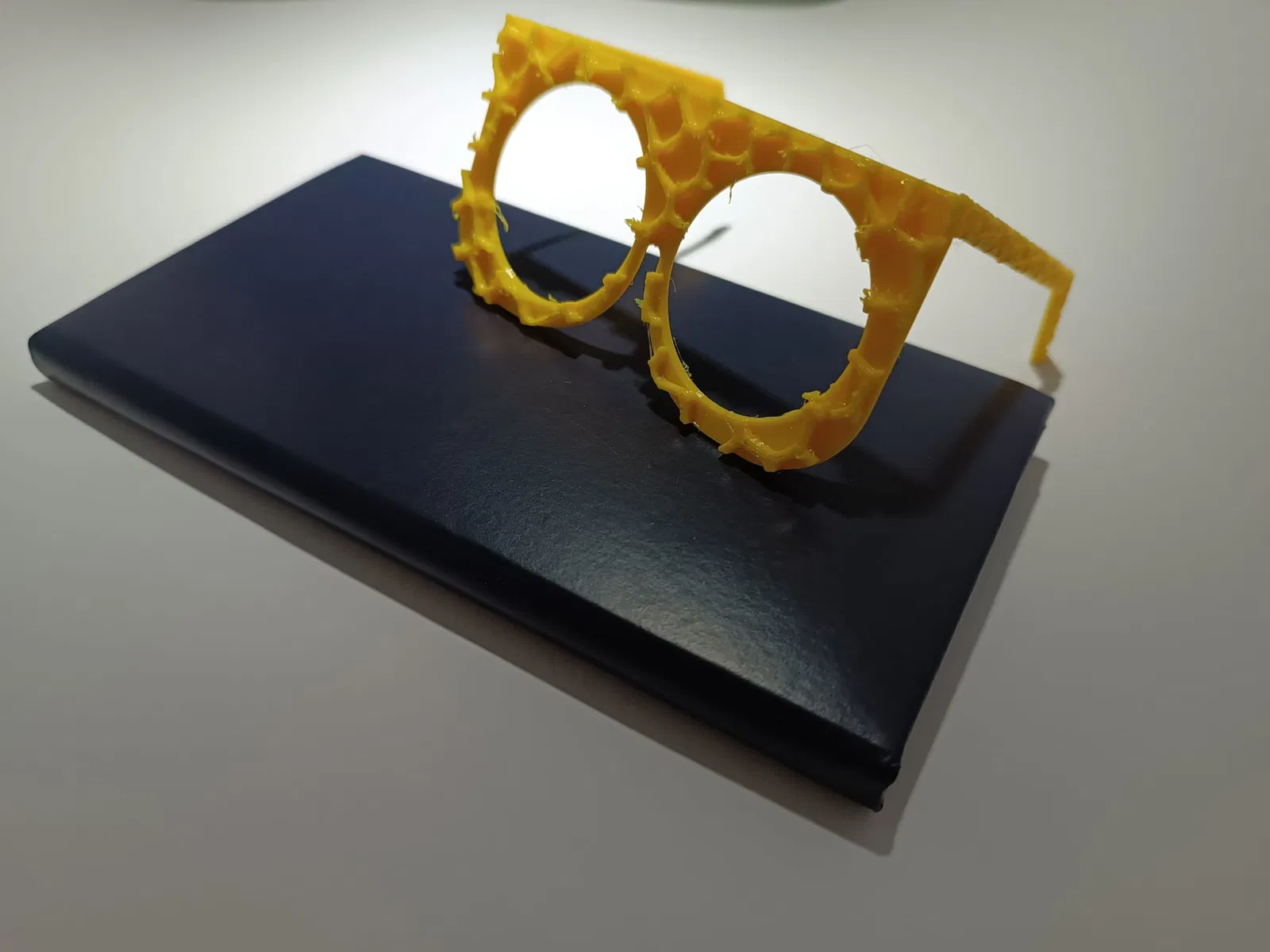 Kính Voronoi được in theo tư thế nằm ngang, với hai phần gọng kính riêng biệt để bạn dán vào. Có thể tùy chỉnh thêm các bộ phận để gọng kính có thể xoay linh hoạt, mang lại vẻ ngoài ấn tượng và độc đáo.
