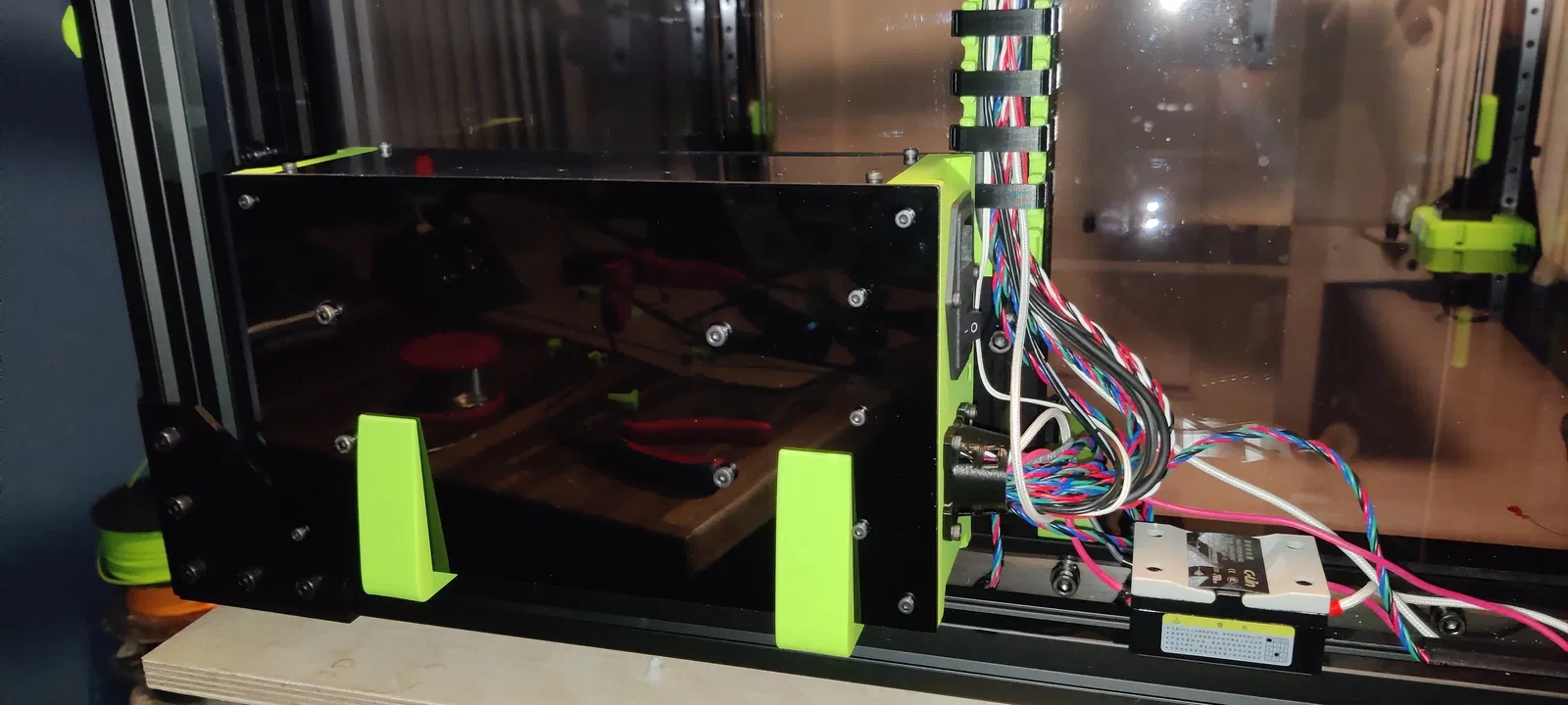 Ngàm gắn hộp điện RatRig cho khung máy in. Gắn vừa khít trên V-Core 3.1. In phẳng, chú ý hướng T-Slot. Bản trên có độ nghiêng sẵn, khỏi cần support.