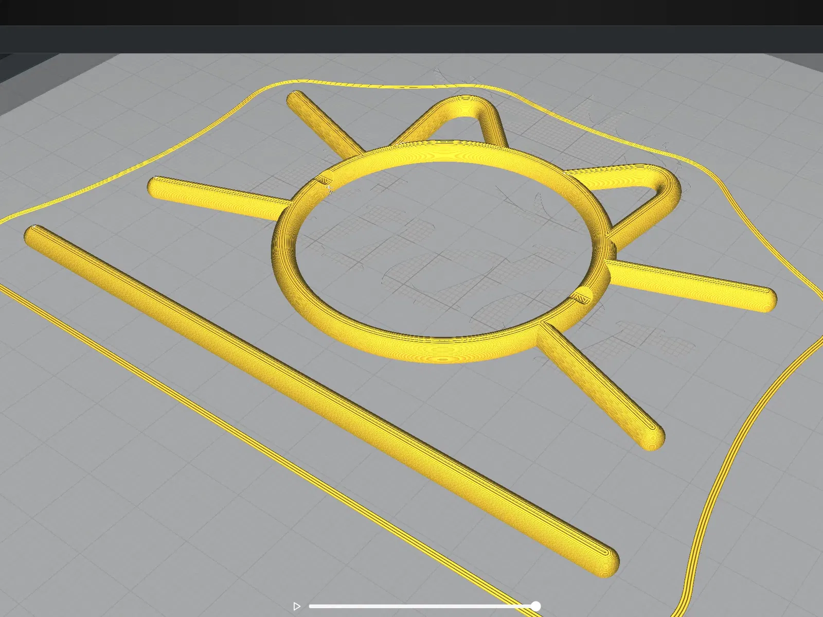 Tôi thấy thiết kế ban đầu rất dễ thương, nhưng tôi nhận thấy hình tròn chính có ít cạnh, và nhiều trong số các mẫu gặp vấn đề trong việc giữ ghim đúng vị trí với phần còn lại của thiết kế. Vì lý do này, tôi đã thêm một rãnh để ghim có thể ngồi vào, với hy vọng giúp nó giữ nguyên vị trí. Topology đã được xây dựng lại, để có một thiết kế đối xứng hơn và loại bỏ bất kỳ polygon/giao điểm nào còn lại.