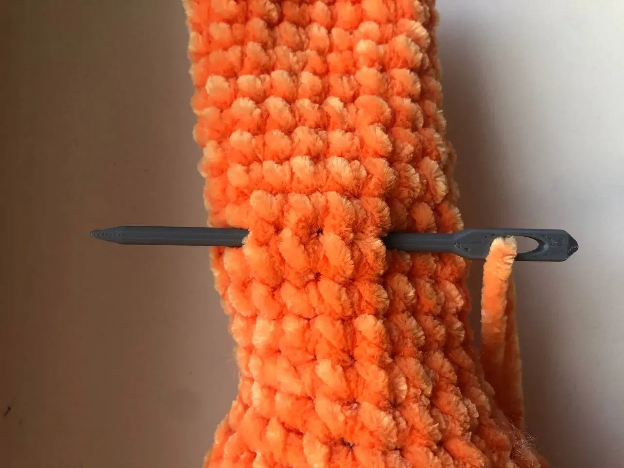 Tôi đã làm cho kim này thực sự lớn (10 cm) vì vậy nó tốt cho đồ chơi lớn. Tôi sử dụng nó rất nhiều để may các phần của đồ chơi sang trọng.