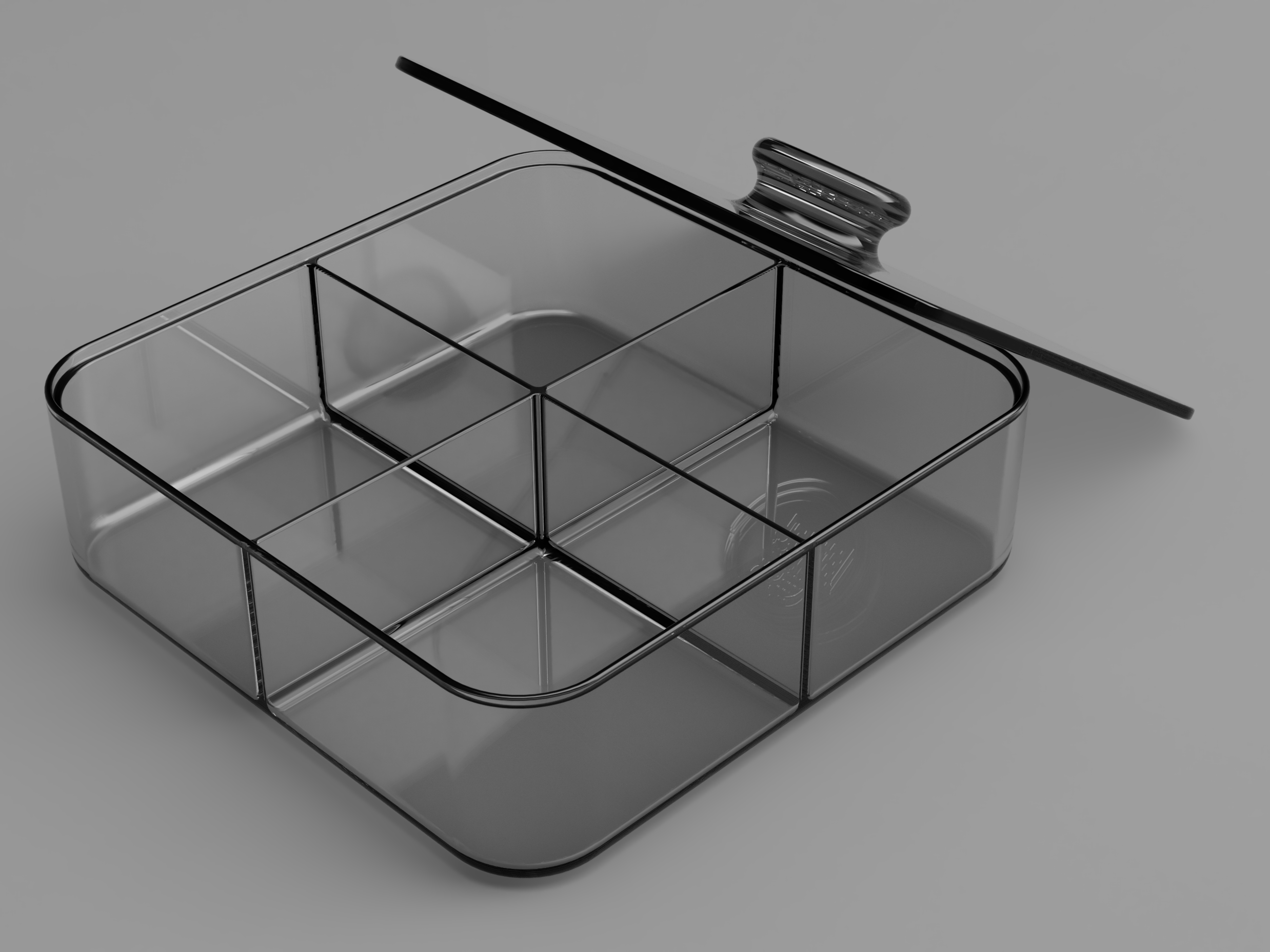 Hộp đựng bánh kẹo/hạt khô có nắp, kích thước 200×200×60mm. Có 3 phiên bản: 1 ngăn, 2 ngăn, 4 ngăn. Thích hợp để bàn hoặc làm quà tặng.