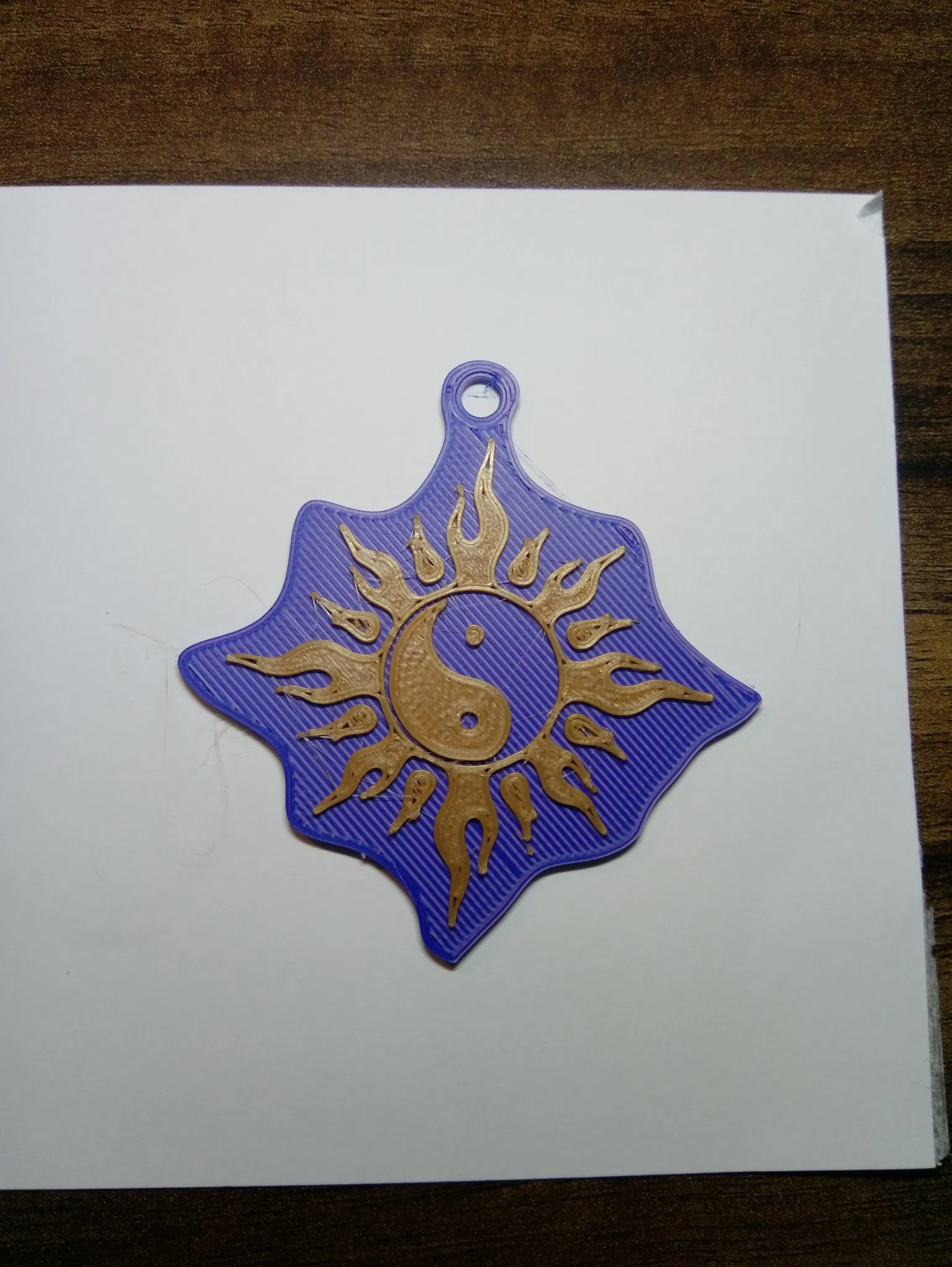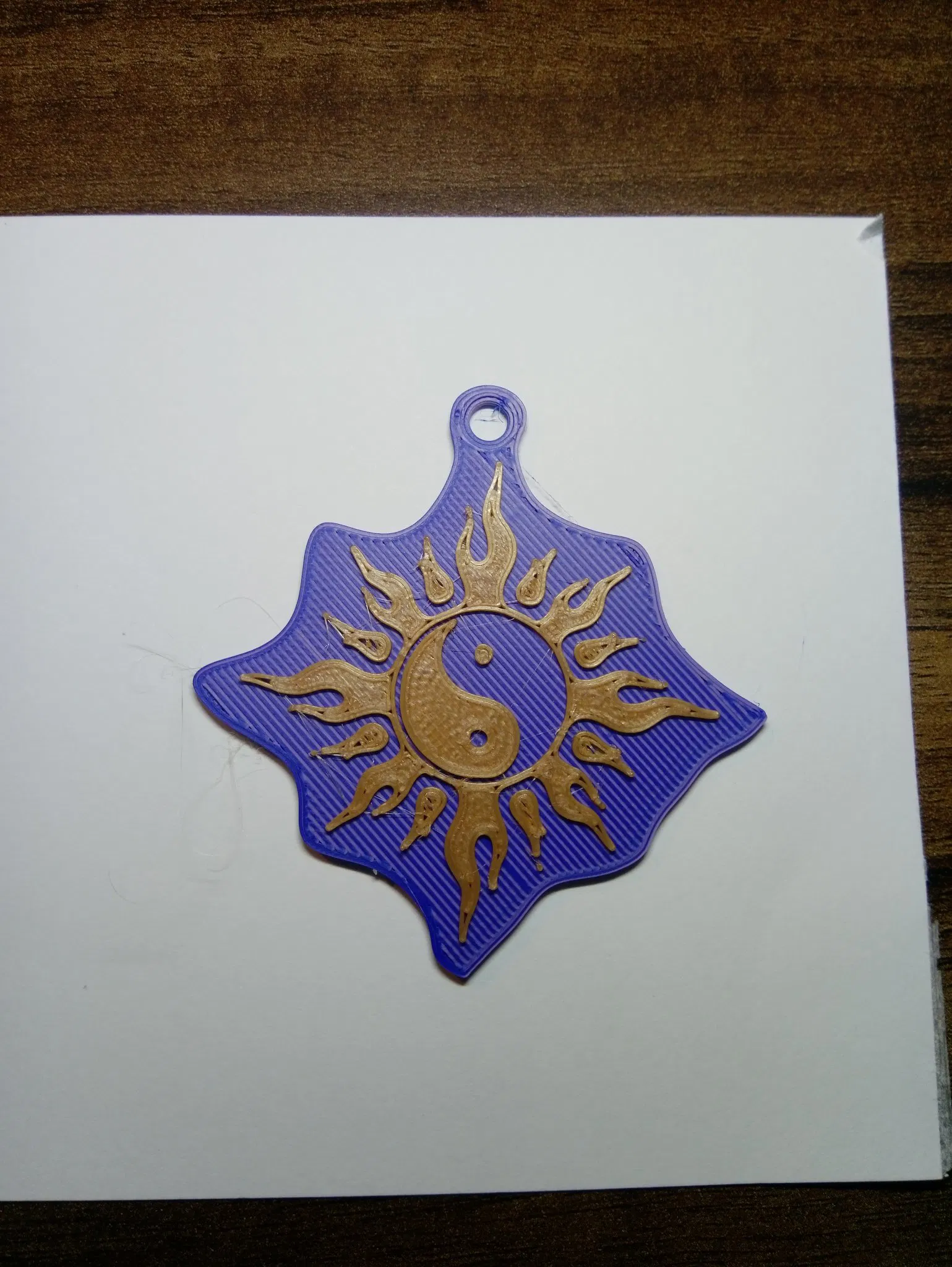 Một trong những bùa hộ mệnh được in từ hai loại filament PLA khác nhau.