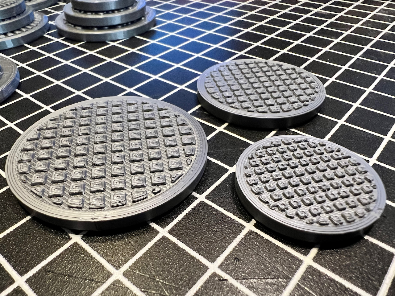 Bộ đế lót miniature này có ba kích cỡ: 25mm, 32mm và 40mm, phù hợp với mọi loại wargame. Bạn có thể in ở chất lượng 20mm hoặc 15mm để có kết quả tuyệt vời cho mô hình của mình.