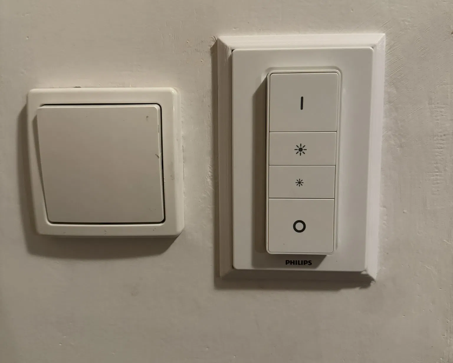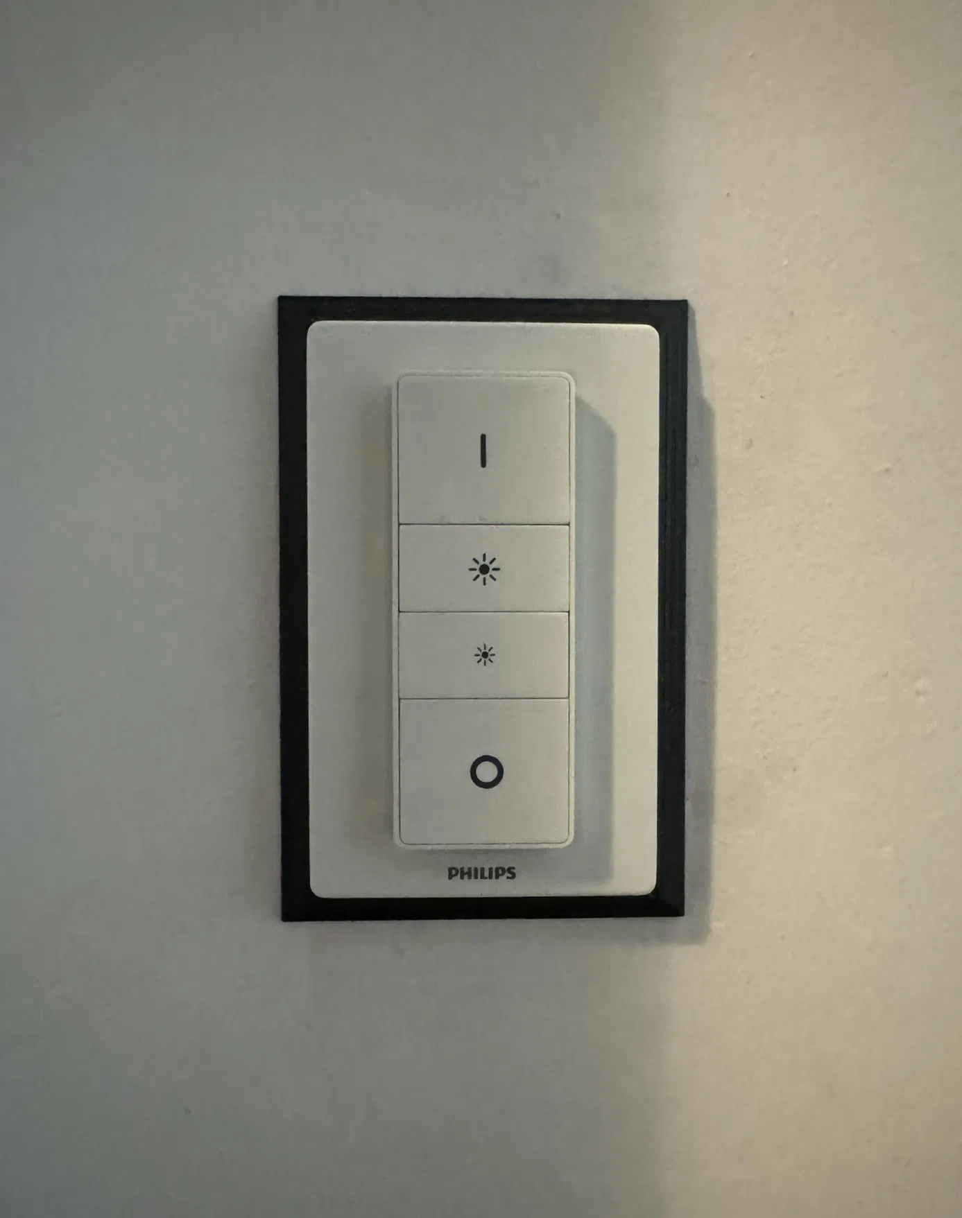 Khung gắn công tắc điều chỉnh độ sáng Philips Hue (v1 & v2). Khung đơn giản để gắn công tắc điều chỉnh độ sáng Hue vào vị trí công tắc cũ.