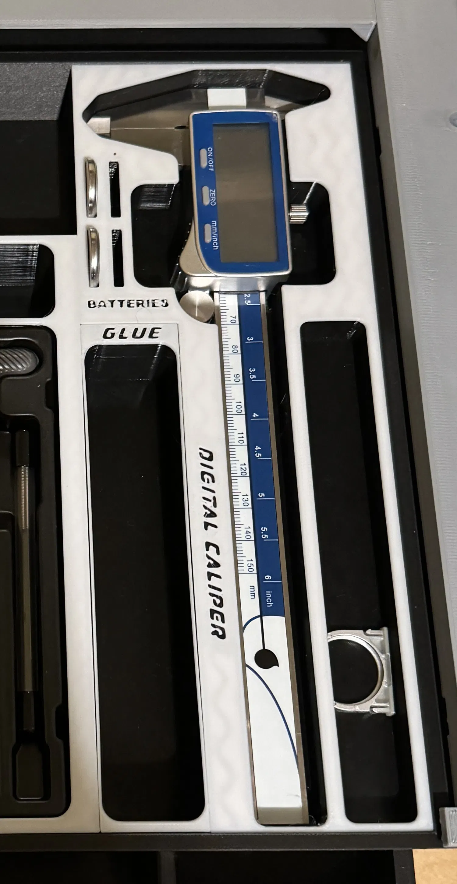 Khay đựng kẹp đo kỹ thuật số lớn kèm Pin của BaBo. Sản phẩm này giúp bạn sắp xếp kẹp đo kỹ thuật số lớn cùng với pin dự phòng một cách gọn gàng. Hoàn hảo cho các kỹ sư và thợ thủ công.