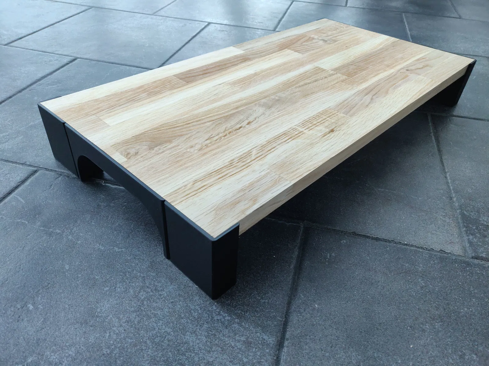 Bộ chân đế màn hình in 3D theo thông số, dùng kết hợp với tấm gỗ. Kích thước có thể tùy chỉnh dễ dàng trong FreeCAD. Thích hợp cho kệ màn hình tự làm.