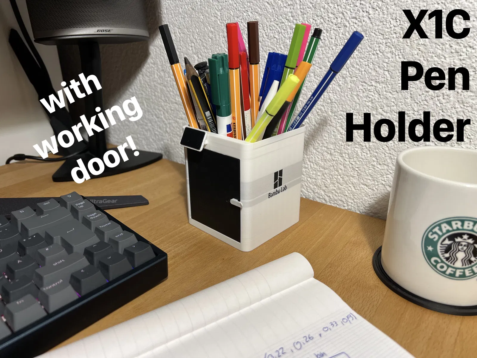 Đây là một cái hộc đựng bút cỡ 80x80mm (WxL) được mô phỏng theo Máy in 3D BambuLab X1Carbon CoreXY. Tỷ lệ này chỉ bằng khoảng 1/5 so với máy thật.