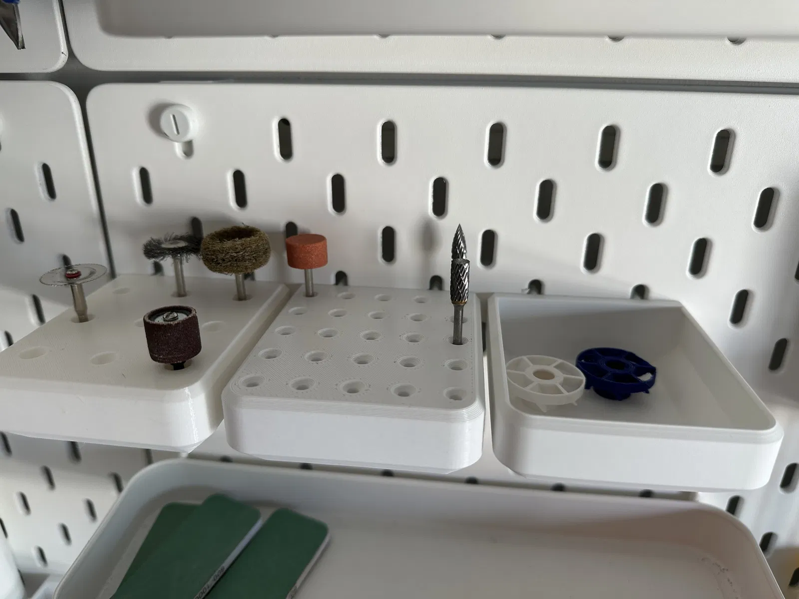 Móc giữ Dremel gắn lên bảng Skadis, thiết kế tiện lợi để giữ máy Dremel của bạn. Chất liệu PLA, in mẫu STL. Phù hợp cho anh em nào hay dùng máy Dremel để làm đồ.