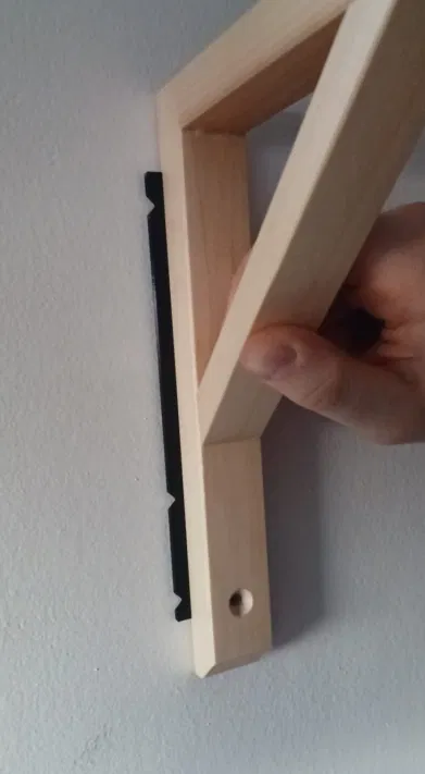 Khuôn khoan đơn giản giúp đánh dấu vị trí lỗ cho ke IKEA Sandshult trước khi khoan. Dùng vạch dấu hai bên để canh vị trí lỗ khoan dễ dàng, có thể dùng cho cả hai cạnh dài và ngắn của ke.