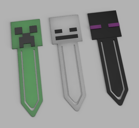 Tạo bookmark Minecraft hình Creeper, Skeleton, Enderman độc đáo. Thiết kế in đa màu, dễ dàng tùy chỉnh hiệu ứng với 1-3 màu PLA. Hoàn hảo cho người hâm mộ Minecraft!