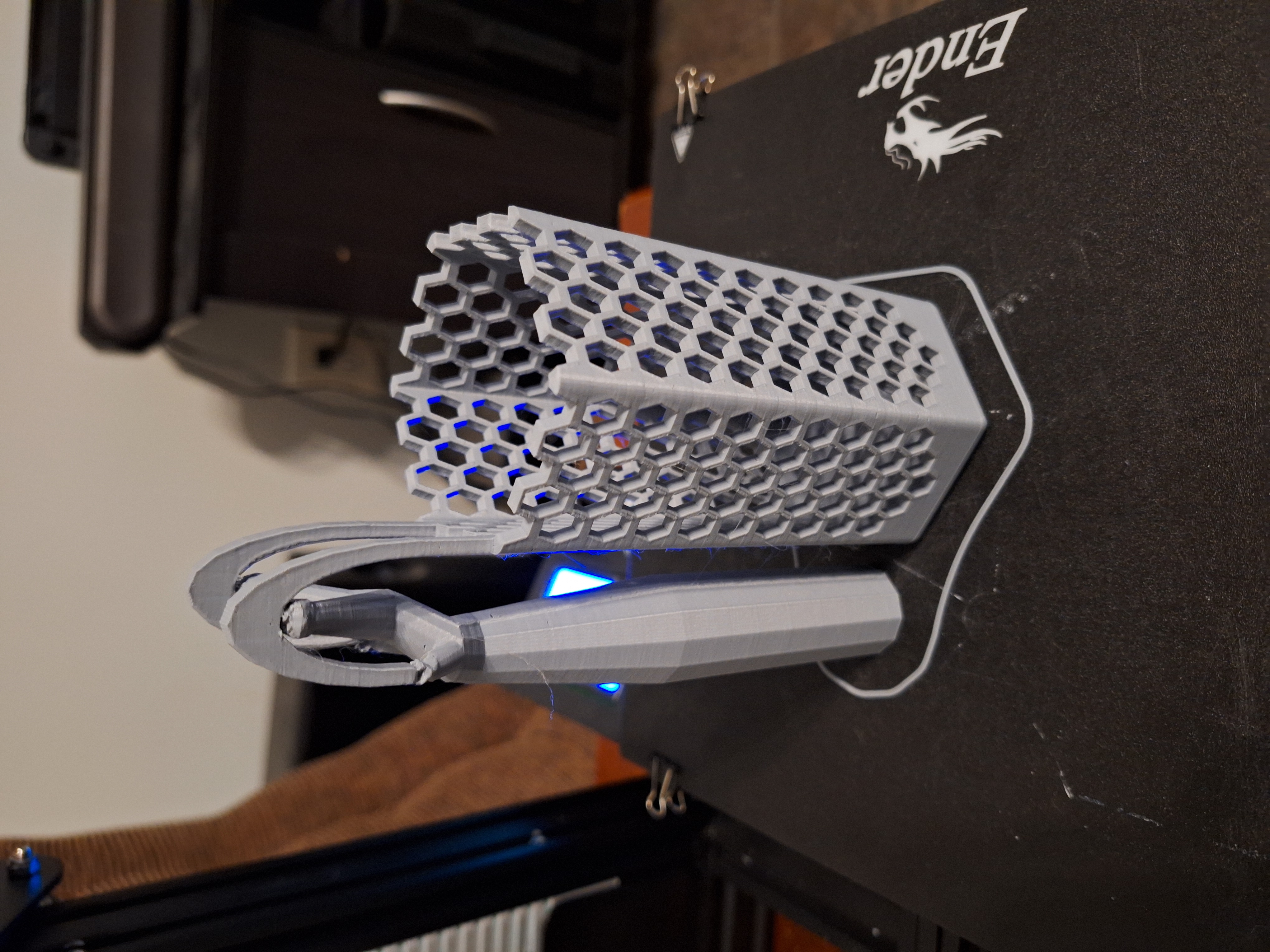 Tui khuyên bạn nên in phần Móc với độ điền đầy (infill) cao, cái móc của tui bị gãy ngay lần in đầu tiên, trong lúc đang in. Keo siêu dính đã khắc phục được vấn đề.