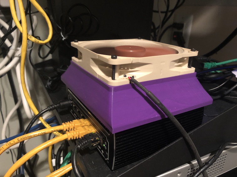 Protectli FW6 là một máy chủ làm mát thụ động, nhưng tui muốn gắn thêm quạt 120mm để kiểm soát nhiệt độ vì tui đặt nó trong tủ AV/máy chủ của mình, và khi mọi thứ bật lên thì nhiệt độ môi trường có thể lên tới hơn 80F.