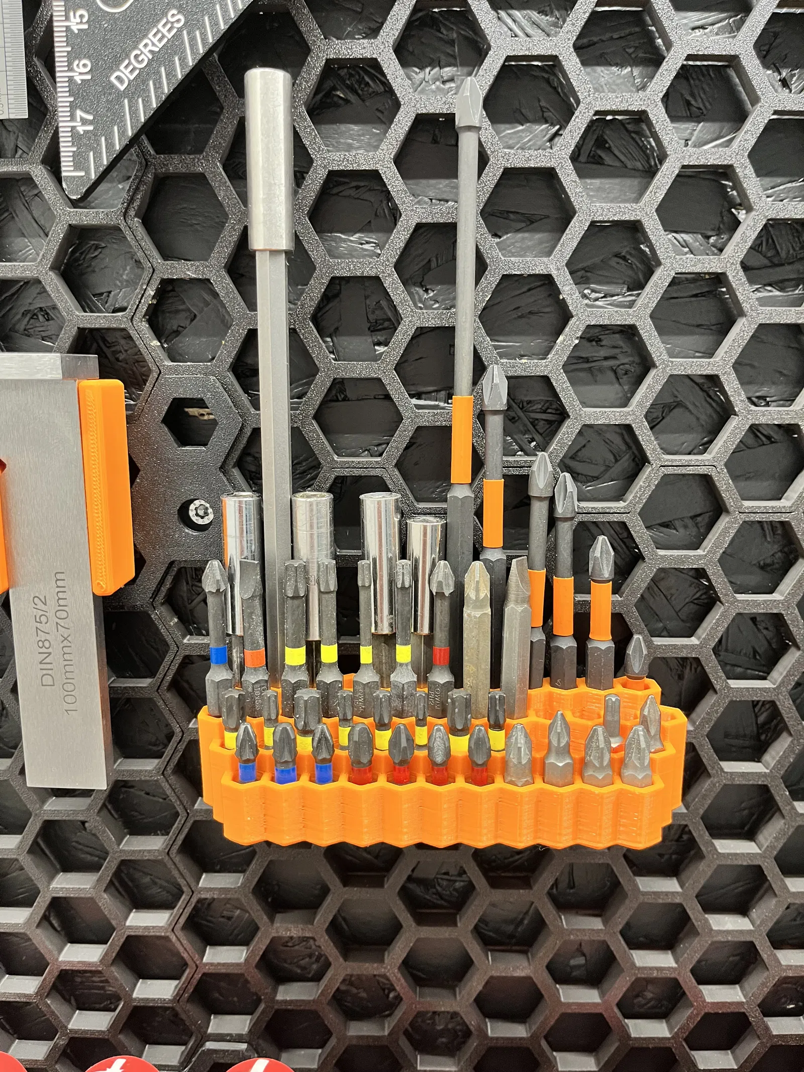 Tôi xin giới thiệu với mọi người món đồ mới nhất của mình — một cái khay giữ mũi lục giác được thiết kế riêng, cực kỳ hợp với hệ thống Tường Lưu Trữ Tổ Ong (HSW) của mấy bạn. Nếu mấy bạn chán cảnh mũi lục giác vứt lung tung hay bị lạc mất, thì cái khay này sẽ cứu nguy cho mấy bạn đó.