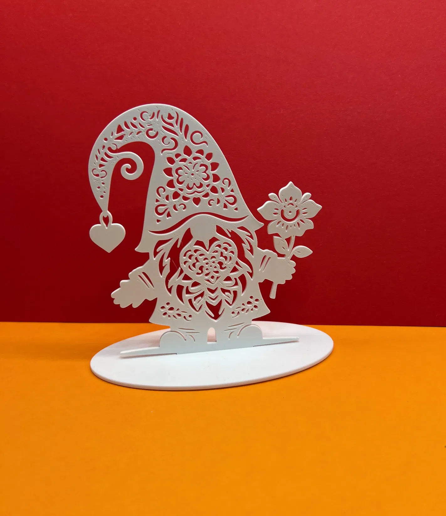 Ông lùn với trái tim trong râu và bông hoa trên tay, để bàn hoặc treo!