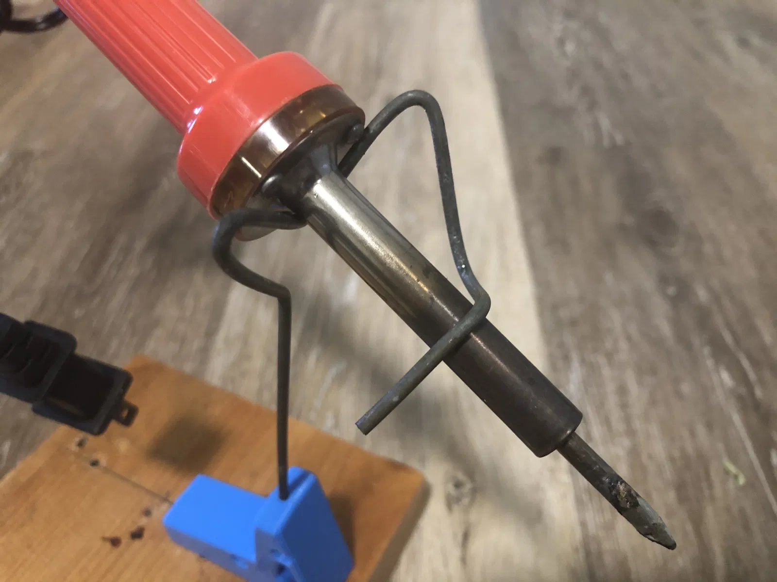 Cái giá đỡ giữ một đoạn dây khoảng 2.5mm cho chân đế mỏ hàn.