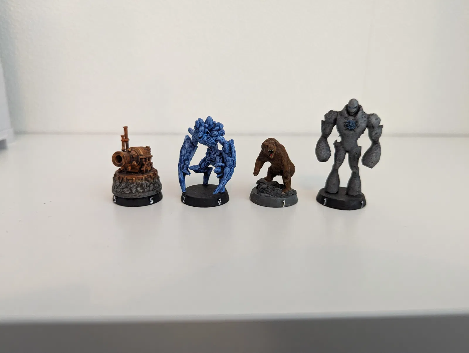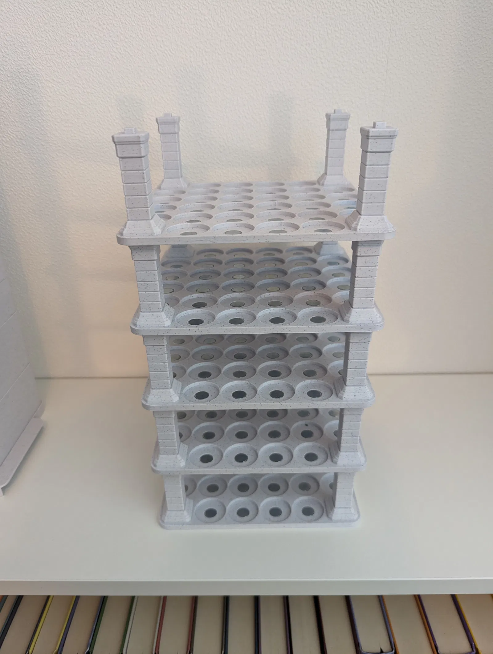 Cách đây vài năm, khi tui bắt đầu chơi Gloomhaven với đám bạn, tui cần một cách chắc chắn để cất hết mấy cái mô hình 3D in ra. Dù có nhiều hệ thống khác nhau cho đế/standee và mô hình, tui vẫn quyết định tự thiết kế một cái riêng. Dạo này mới mua Frosthaven và đang chuẩn bị chơi, tui in thêm mấy cái nữa và nghĩ là nên chia sẻ cho mọi người. Đây là một hệ thống dùng khay vuông đơn giản và đế có nam châm, giúp dễ dàng cất giữ và gắn các đánh dấu standee vào đế. Đế 25 mm có đánh số từ 1 đến 10 và một đế không số cho boss. Đế có khe bên dưới để gắn nam châm 10x1 mm. Các ký hiệu trên cạnh rất nhỏ nên tui in bằng nhựa resin, bạn có thể in đế không số bằng FDM và tự sơn số lên. Mỗi khay chứa được 24 mô hình và mỗi khe trên khay có chỗ cho nam châm 10x1 mm hoặc đĩa kim loại 10x1 mm (đĩa kim loại rẻ hơn nam châm nhiều). Các khay có thể xếp chồng lên nhau, giúp bạn dễ dàng cất giữ và vận chuyển tất cả các mô hình. Để chứa hết mô hình cho Gloomhaven cần 7 khay và cho Frosthaven cần thêm 6 khay. Các standee có khe tương tự và trong Gloomhaven, chúng được dùng để biểu thị kẻ địch thường (màu trắng) hoặc ưu tú (màu vàng) (và trong Frosthaven còn có cả triệu hồi [màu xanh] và boss [màu đỏ]). ___ Cảm ơn @Robagon3D vì mẫu Stone Pillars for Gloomhaven mà tui đã dùng làm các góc trụ cho thiết kế khay. Nam châm tui dùng → N35 Ø 10 x 1 mm: https://www.thesolutionshop.com/en/neodymium-magnetic-disc-n35-%C3%98-10-x-1-mm Đĩa kim loại tui dùng → Ø 10 x 1 mm: https://www.thesolutionshop.com/en/metal-disc-%C3%98-10-x-1-mm