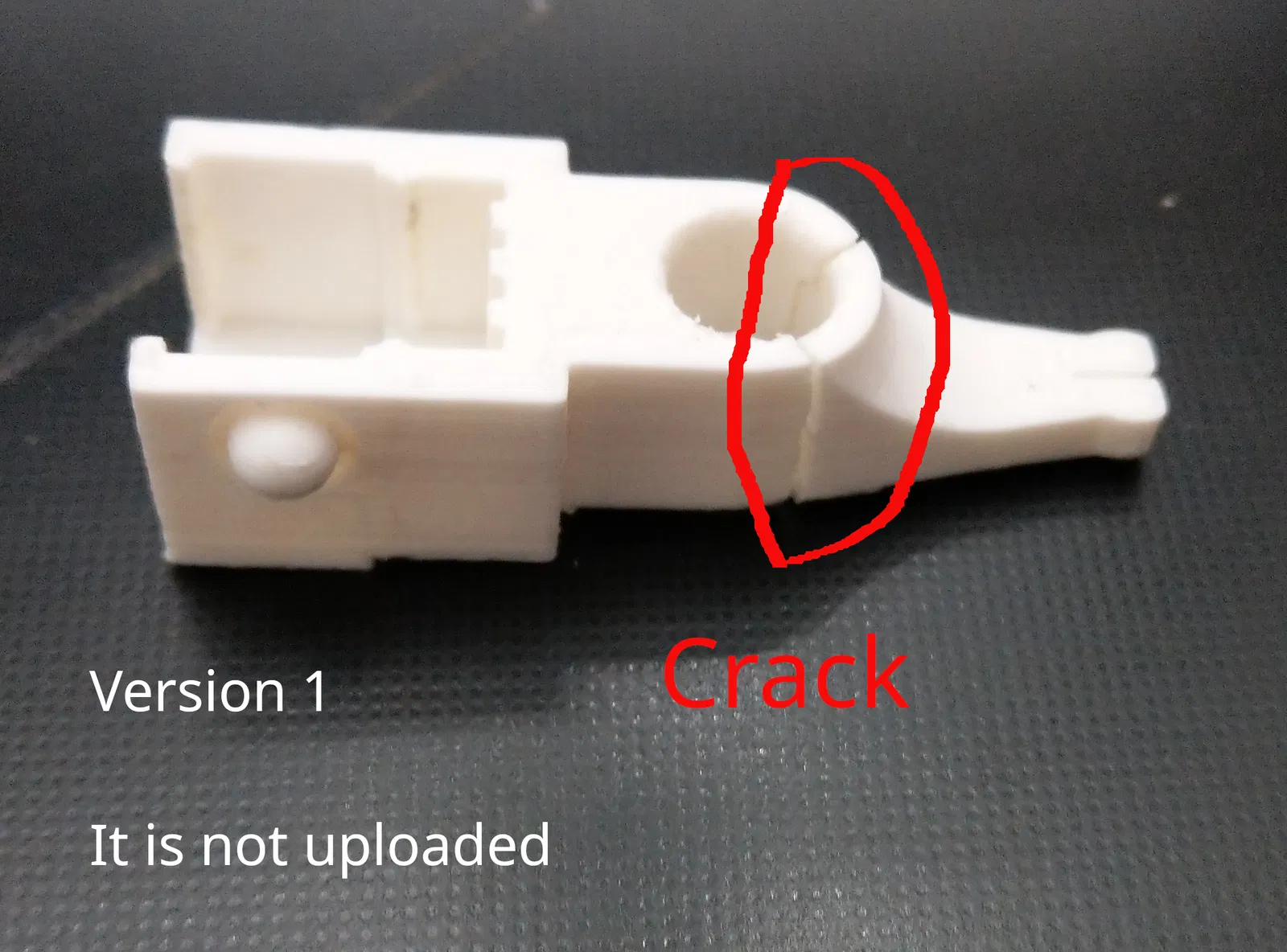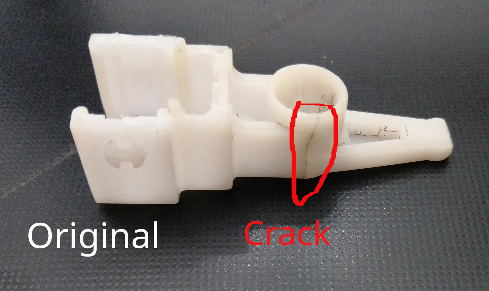 Cái bộ phận đó xài chưa được 1 tháng, mấy bà coi kết quả trong hình "Version 1" đó, y chang chỗ cũ, còn cái vết nứt kia tôi nghĩ là do lúc nó gãy, mấy cái lò xo 2 bên nó làm cho cái bộ phận bị xê dịch, mà tôi thì in bằng PLA nó không có độ đàn hồi nên nó bị cắt ngọt luôn do cái lực căng của lò xo.