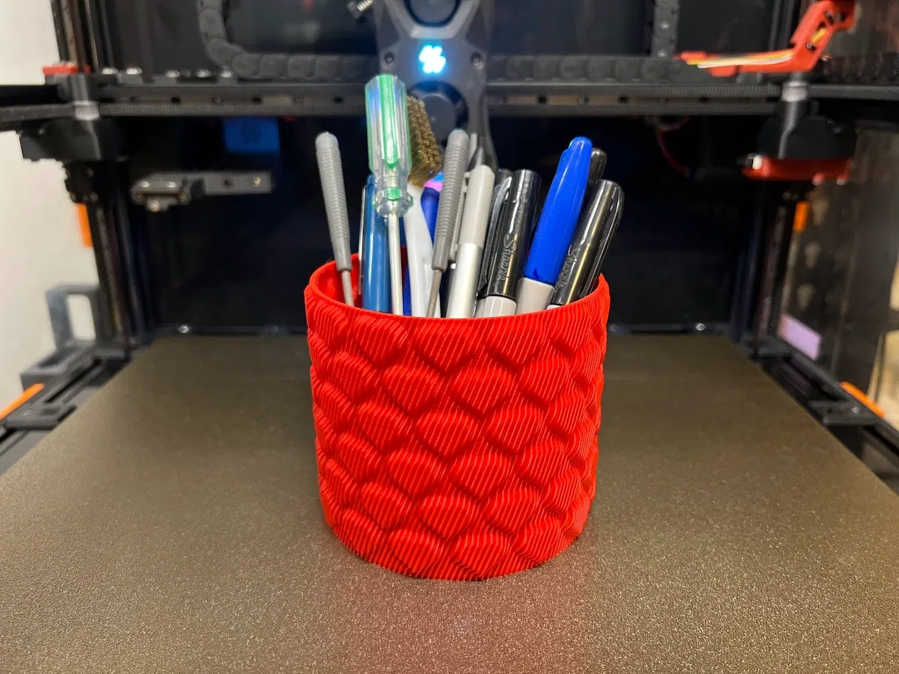 In bình hoa này với độ rộng đầu phun ngoài là .6mm và sử dụng chế độ in xoắn ốc (spiral vase mode). Hoàn hảo cho ngày Lễ Tình Nhân, mang đến sự lãng mạn cho không gian của bạn với thiết kế độc đáo hình trái tim.